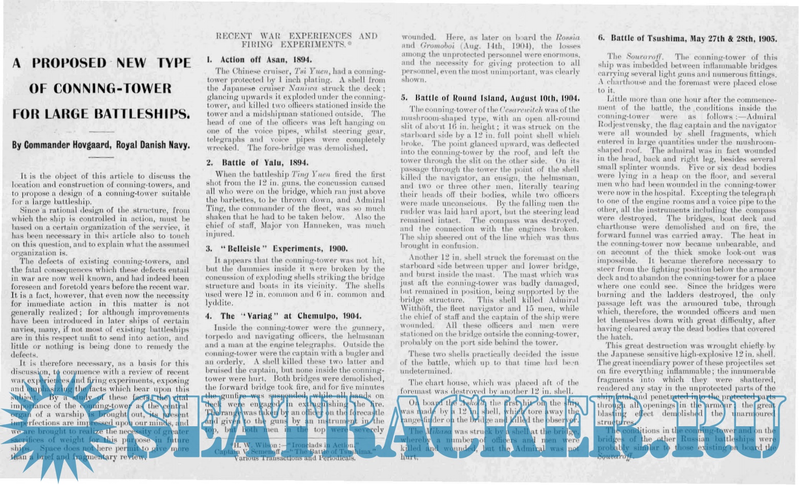 Year: 1908 Language: english Author: Hovgaard W. Genre: History Publisher: Unknown Format: PDF Quality: eBook Pages count: 12 Description: The Fate of the Russian Ships at Tsushima from a Naval Constructor’s Point of View.