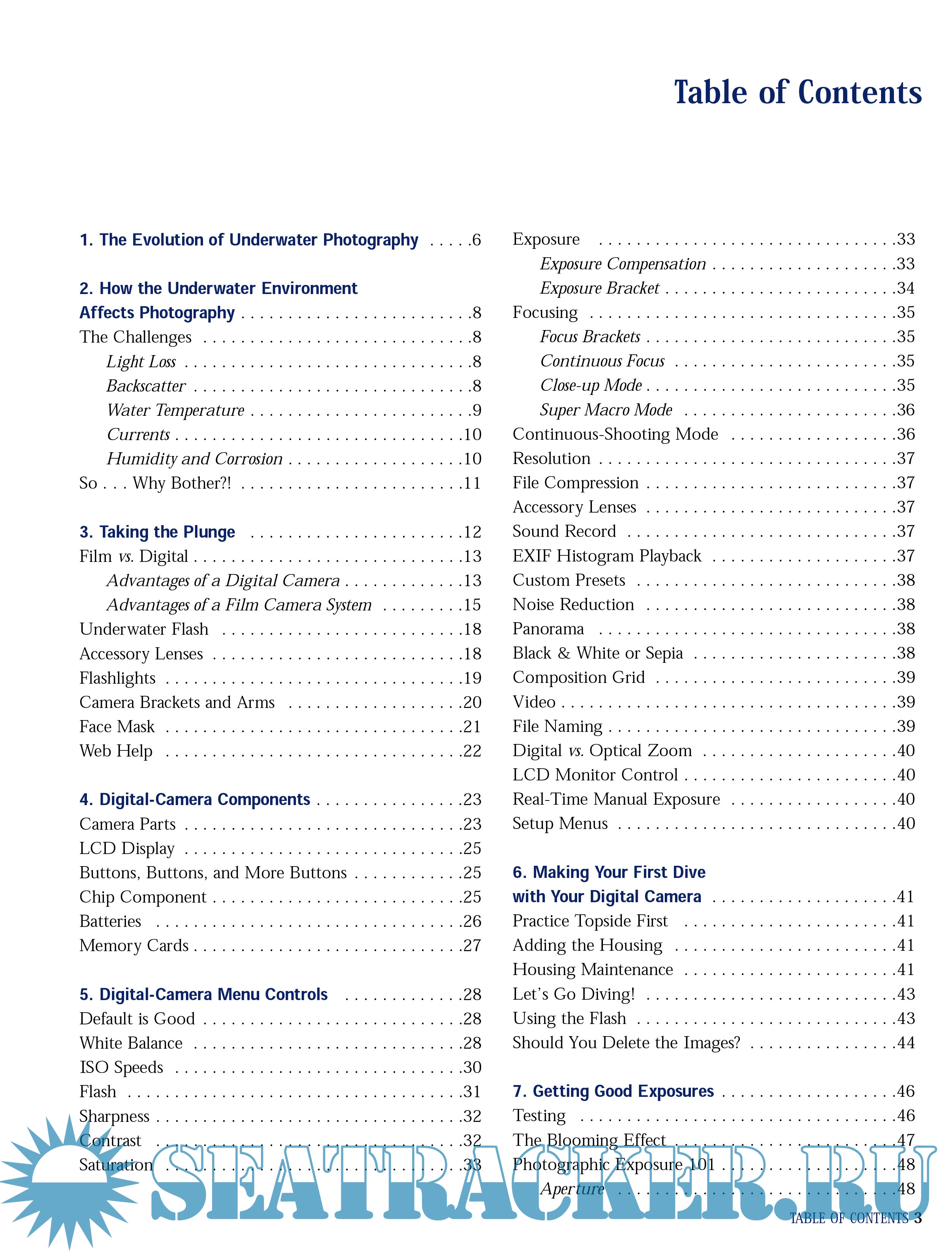 Year: 2005 Language: english Author: Jack and Sue Drafahl Genre: Guide Publisher: Amherst Media, Inc. ISBN: 1-58428-166-9 Format: PDF Quality: eBook Pages count: 130 Description: MASTER THE SKILLS YOU NEED TO CREATE DAZZLING PHOTOS WITH YOUR UNDERWATER DIGITAL CAMERA Learn to make the most of this exciting new technology with tips for purchasing gear, selecting camera settings, and taking your first dive with a digital camera. Also included are exposure techniques, lighting tips, and ideas for close-up photography. Packed with dramatic images and clear, step-by-step techniques, this book will inform and inspire underwater photographers of all skill levels. FEATURES: -Important advice for buying underwater digital photography equipment -Tips for preparing for and taking your first dive with a digital camera -Using digital-camera menu controls for flawless underwater images -Professional exposure and lighting techniques — from available-light images to single- and twin-flash photography -Dealing with common problems like blooming and backscatter -Ideas for dramatic close-up and super macro photography—from equipment selection to lighting and shooting -Techniques for photographing fish, shipwrecks, panoramic reef images, and more -Advice for traveling with and maintaining your underwater digital photography equipment