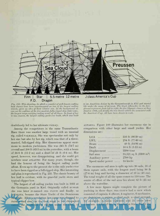 The book contains detailed discussions of aerodynamic theory, yachting history, techniques, hydrodynamics, rating rules, classes, safety at sea, sails, navigation, and other topics.