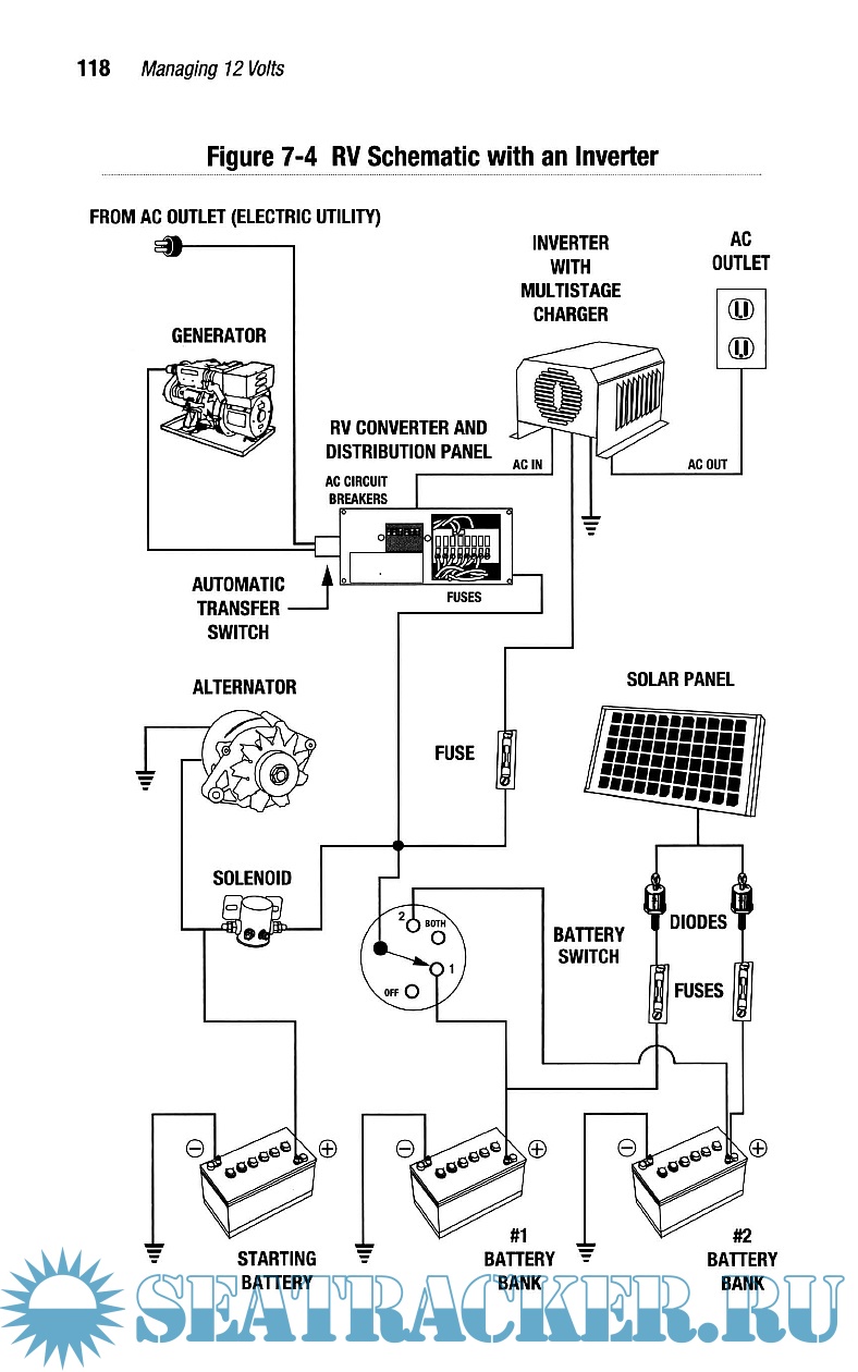 Description: This manual is about how to upgrade, operate and troubleshoot a 12-volt systems with emphasis on understanding what may be wrong with a system and how to improve it with a multi-stage charging system. The author, through diagrams and clear, concise writing, lead the reader to understand, operate, upgrade, repair the 12 V electrical system, how to change parts, calculate the amount of charge batteries contain and power consumption, and how to recharge them properly.