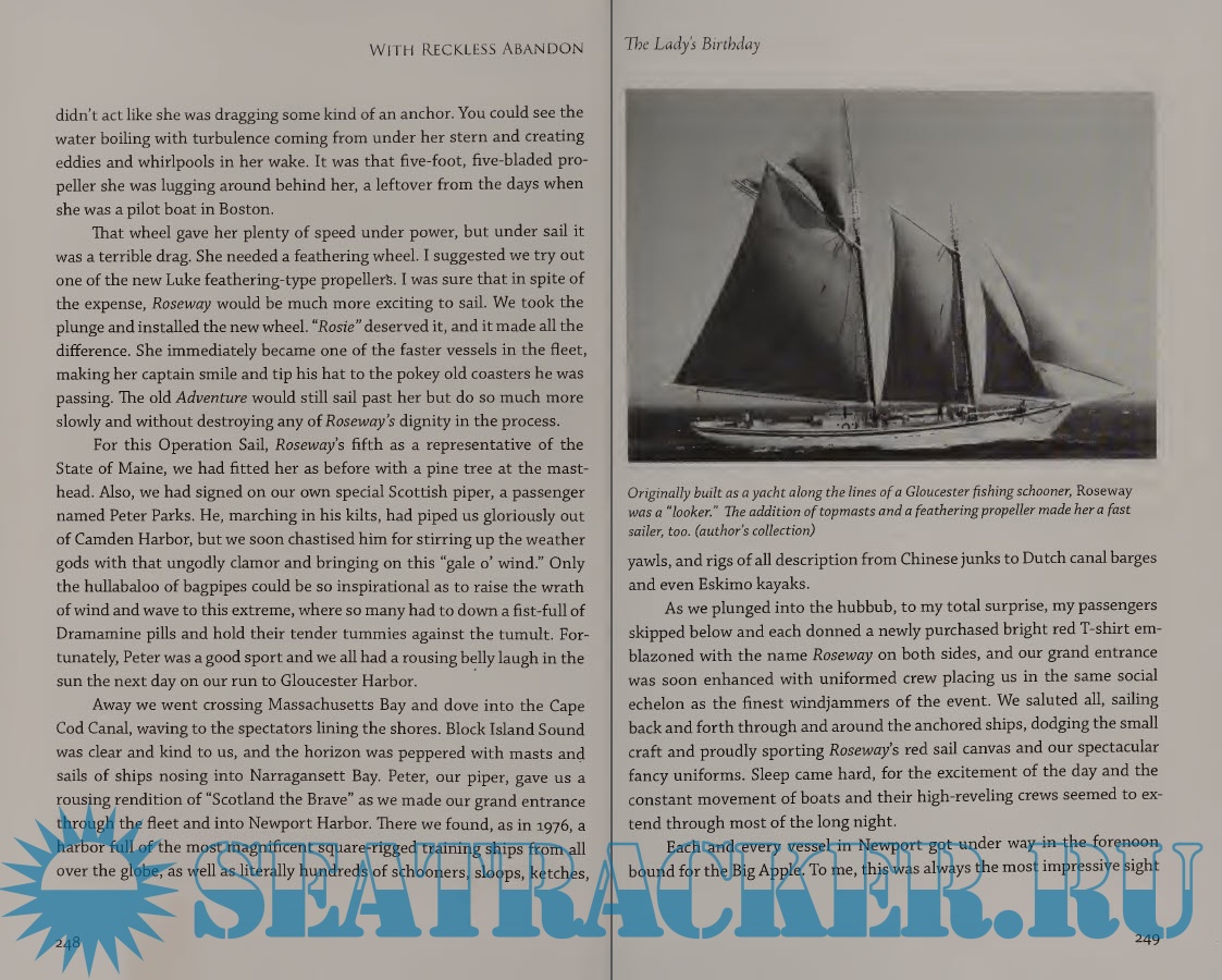 Year: 2007 Language: english Author: Capt. Jim Sharp Genre: Textbook Publisher: Devereux Books Edition: First ISBN: 1-928862-12-8 Format: PDF Quality: Scanned pages Pages count: 276 Description: Imbued with a sea captain’s outlook on life and the optimistic attitudes found in overcoming obstacles—from battling childhood polio to preparing and maintaining a 100-year-old wooden schooner—this autobiography regales the life of a leading windjammer captain and tugboat skipper. Packed with wonderful characters and salty adventures—from a mutinous cook to sailing through nor’easters—this inspirational life story takes readers from ports of call in Florida and the Bahamas to the foggy shores of Maine. Additional info: With Reckless Abandon: It combines the sense of carelessness with the idea of yielding oneself to an action or impulse without restraint. So a person jumping into something with reckless abandon is going into it wholeheartedly, perhaps impulsively, and with no concern for consequences or danger.