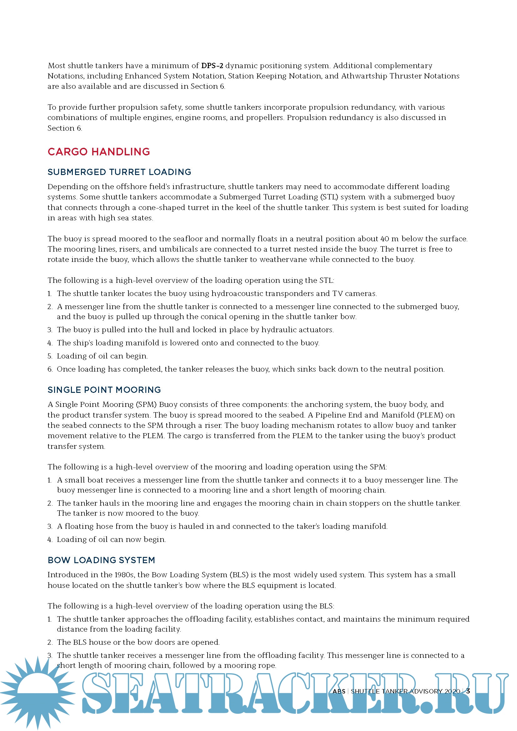 Year: 2020 Language: english Author: ABS Format: PDF Quality: eBook Pages count: 49 Description: Shuttle Tankers are a specialized type of tanker, designed to load cargo from an offshore facility or a larger vessel that is not able to transit to the destination due to draft restrictions. Frequently, they are used as an alternative to pipelines where harsh environments, remote locations or water depth prevent the installation of a pipeline. Station-keeping, cargo handling and communication between the shuttle tanker and offshore loading facility are vital to the safe operation of a shuttle tanker. In recent years, there has been an influx of dual-fuel shuttle tankers specifically utilizing LNG or hybrid propulsion to reduce the carbon footprint of their vessels. This Advisory provides an overview of shuttle tanker design and operation . It discusses regional considerations for shuttle tankers operating in Brazil, the North Sea, and the Gulf of Mexico . It explains how ABS optional notations complement class and statutory requirements to fulfill regional and operational requirements . We also identify requirements that are not covered by our class offerings that may be addressed by newbuild specifications or operational policies . We conclude by discussing new technologies that have already started to impact the shuttle tanker market . Edition October 2020