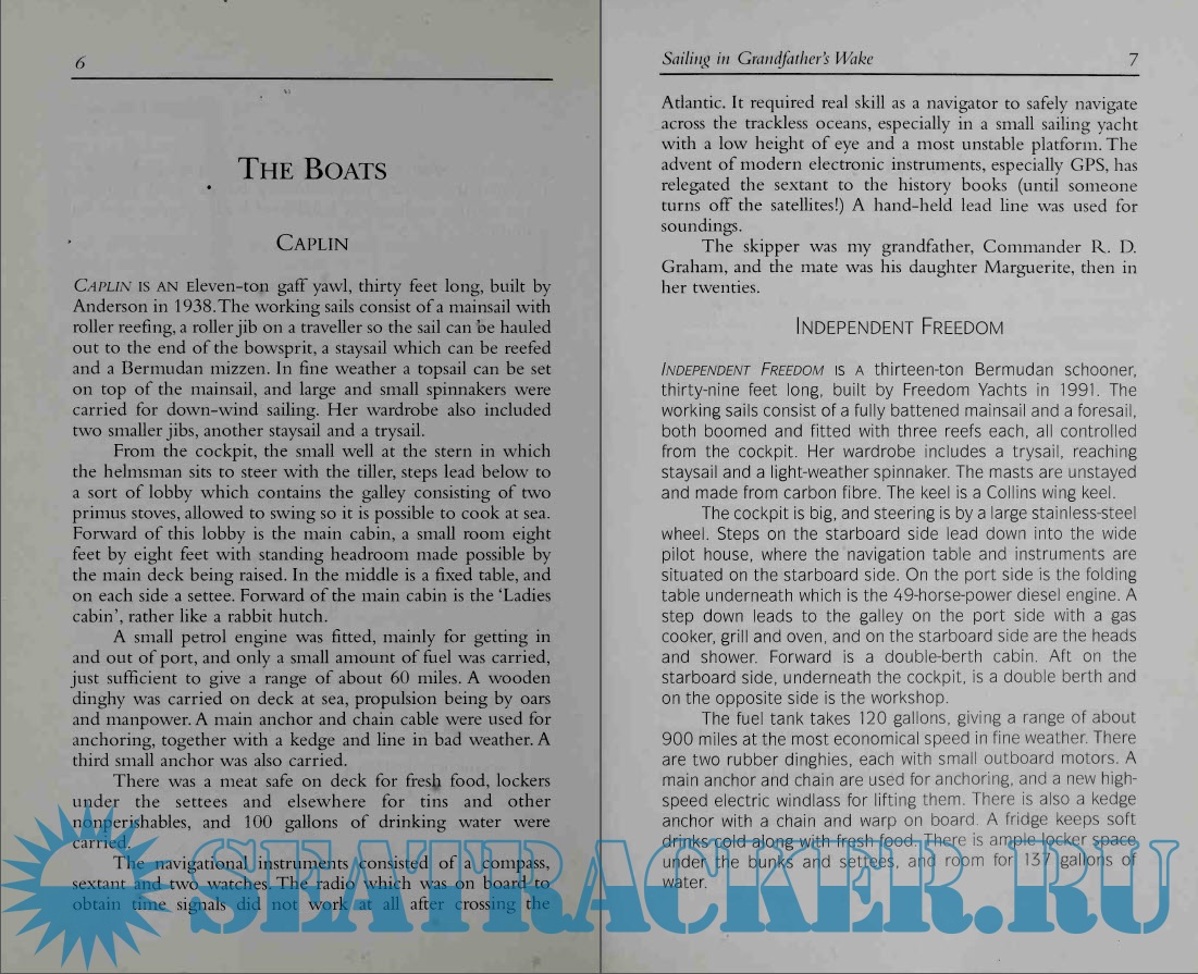 Description: In 1938, Caplin, skippered by Commander RD Graham with his daughter Marguerite as mate, set out from England to sail around the world. Sixty years later Cdr Graham's grandson, Captain Ian Tew, brought Independent Freedom in New York and, with his aunt's account of the voyage as his guide, sailed in Caplin's wake.