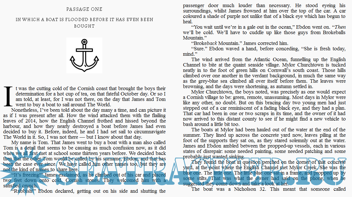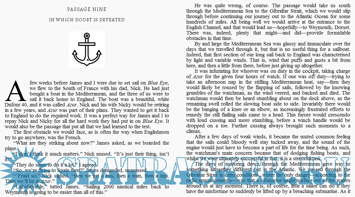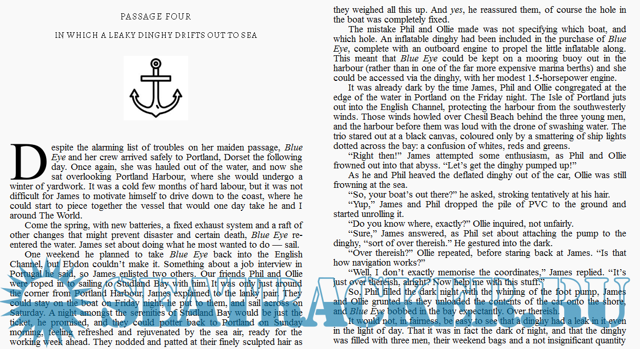 Year: 2021 Language: english Author: Tom Dymond Publisher: Hardstone House Edition: 1st ISBN: B0983SPKLD Format: EPUB Quality: eBook Pages count: 70 Description: Tom Dymond is a travel writer currently living in Bristol, England. During his three-year voyage around the world on a ten-metre boat he wrote articles for yachting magazines in both the UK and the US. He has since published his first travelling series, recounting the 32,000-mile circumnavigation he and his old chum, James, undertook on a little boat called Blue Eye. When a friend suggested to James he should buy a sailboat and circumnavigate the world, not even childhood memories of almost drowning on his father’s boat could deter him. Finding Blue Eye for sale in deepest Cornwall James brought her back to Dorset, where she quickly became an unwitting vehicle for escape. With only a drop of sailing experience between them, James, Tom and their motley group of friends spent their weekends sailing in the English Channel. Their plan - to see how many things they could get wrong. The question - could they get enough things wrong, that they would survive the world’s oceans in the years to come? Wrongs of Passage is the first book in Tom Dymond’s travel series of sailing Blue Eye around the world. If you like daring adventure, hilarious mishaps, and poignant musings, then you’ll love this first instalment of Blue Eye’s journey.