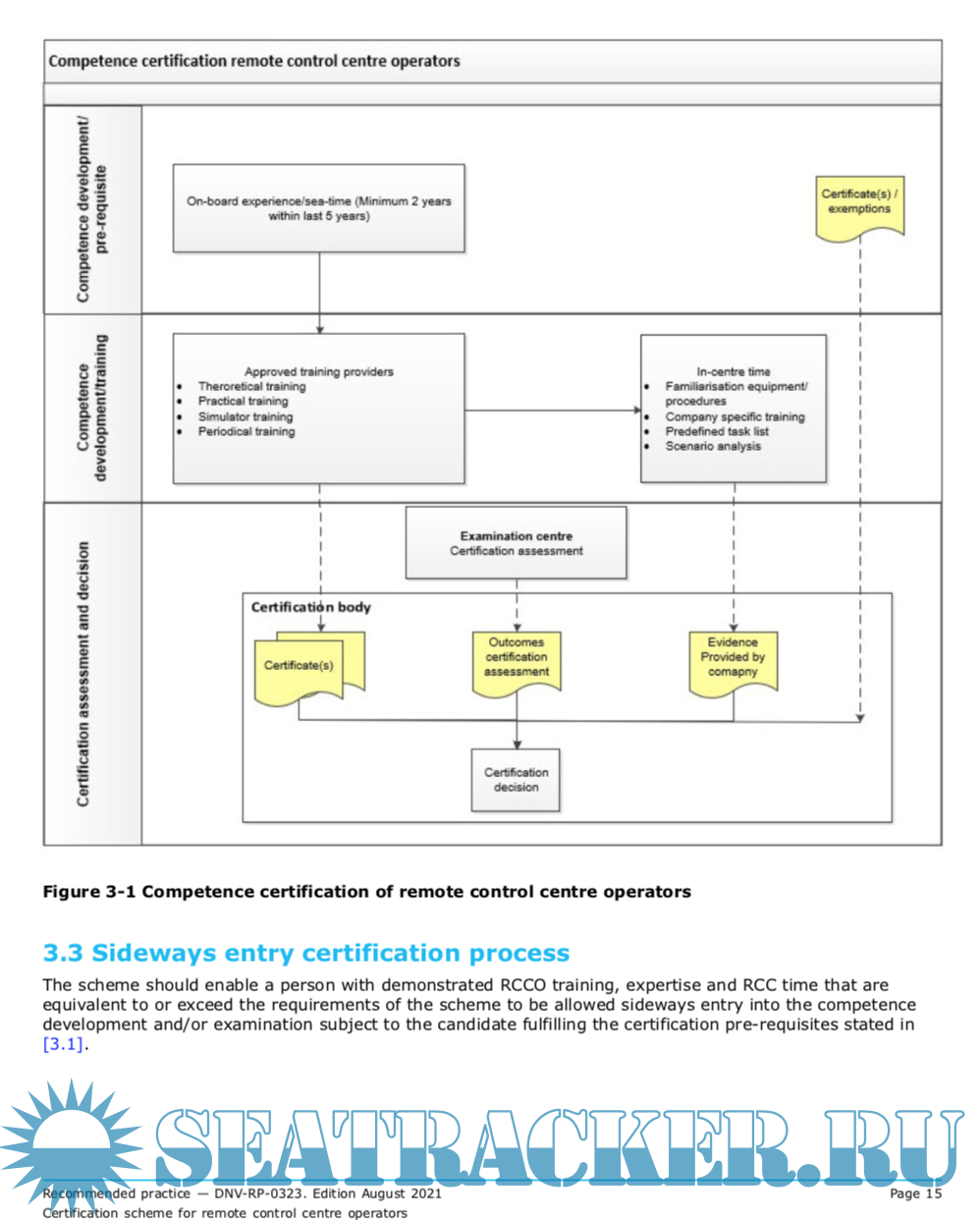 Description: The objective of this RP is to provide guidance for flag states, labour supplying countries, maritime education and training (MET) states, industry organizations or other parties aiming to develop, establish and/or maintain a scheme for certification of remote control centre operators in line with industry expectations and accepted certification principles.