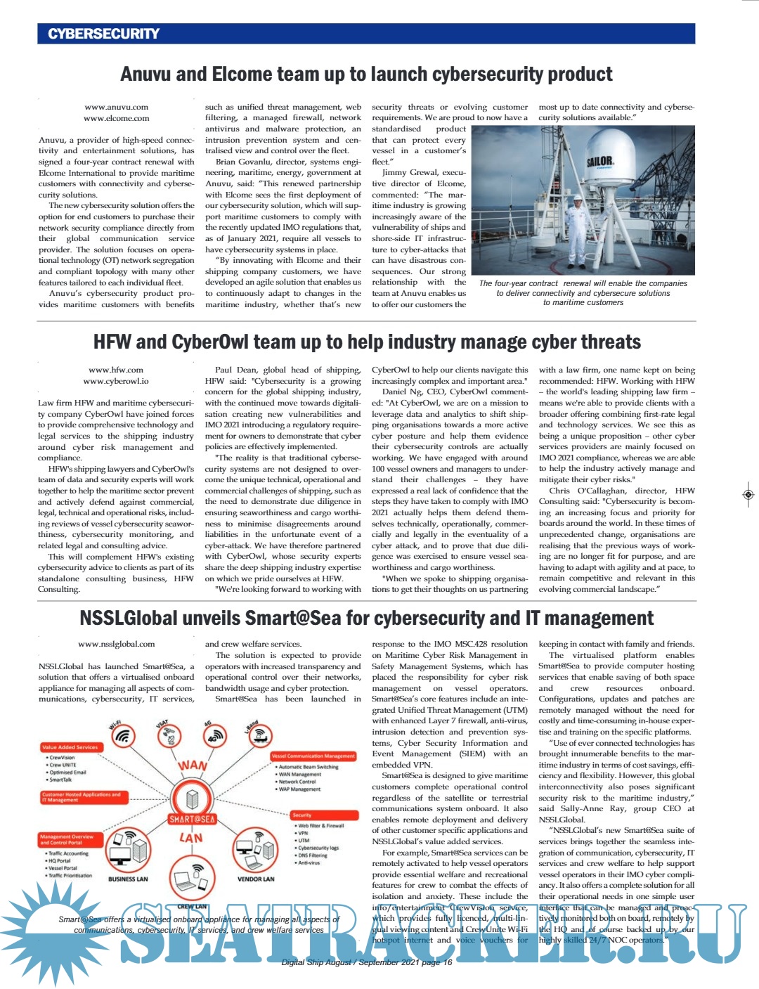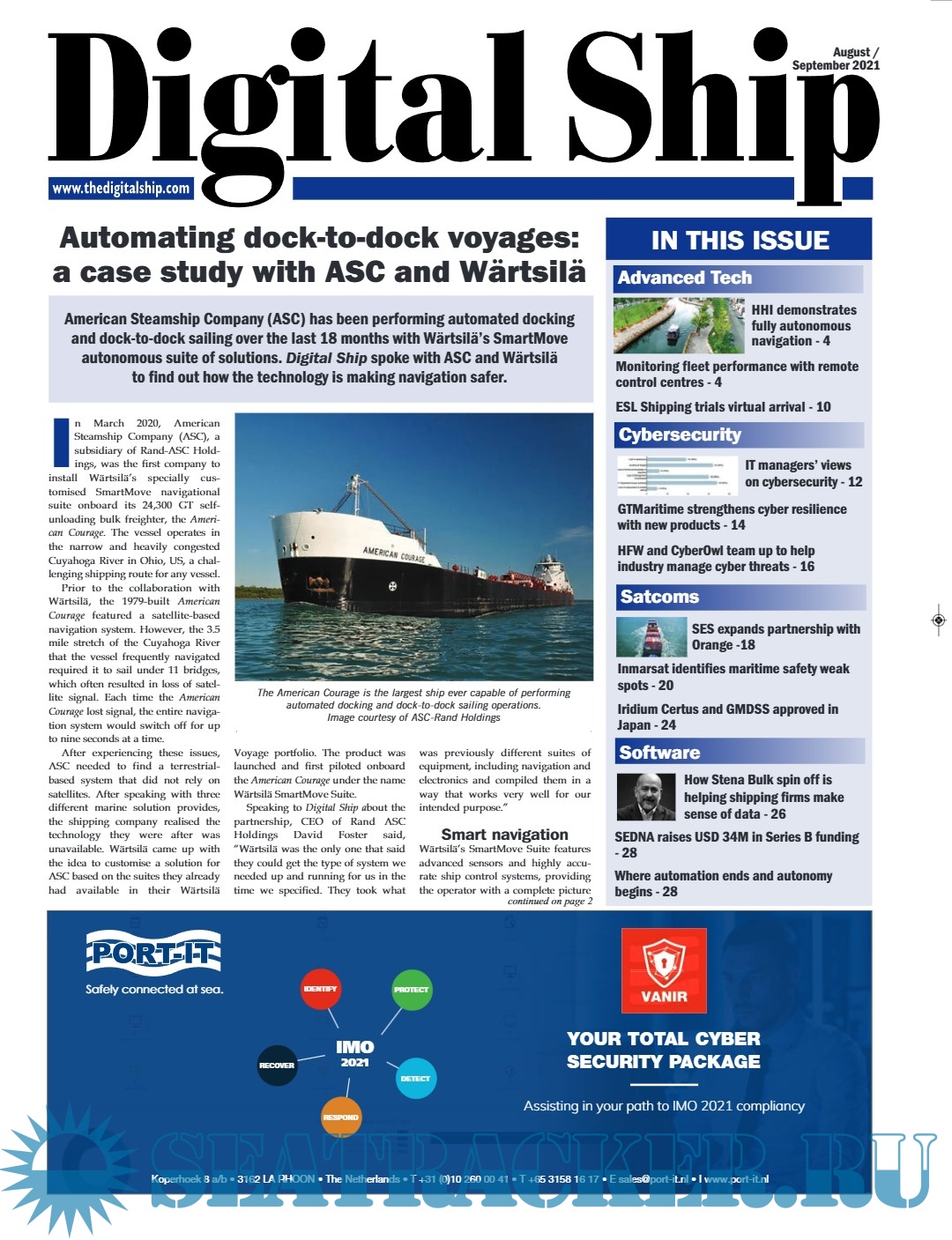 Description: Digital Ship magazine provides the latest information about maritime satellite communications technology, software systems, navigation technology, computer networks, data management and TMSA. It is published ten times a year.