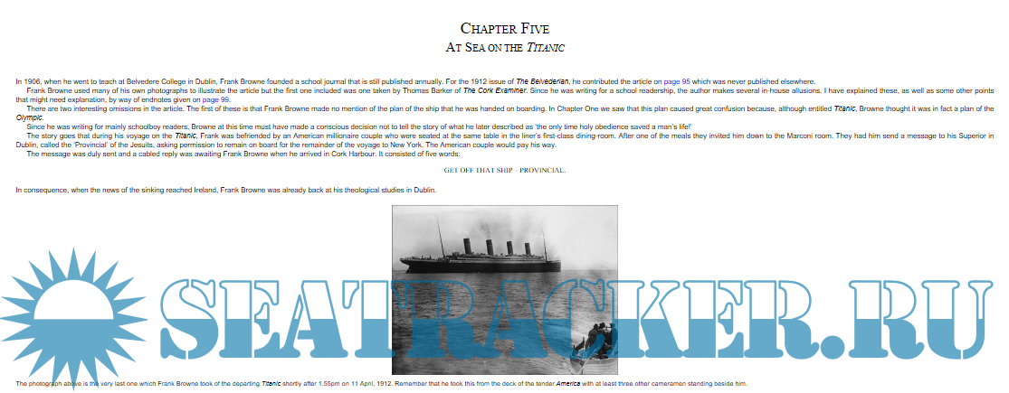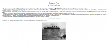 Description: As a passenger on the first two legs of Titanic's ill fated voyage, Father Francis Browne SJ's photographs are an immensely important record. As well as taking a unique set of photos, Father Browne also assembled an incredibly valuable album of Titanic material such as an original deck plan, menus, letters to him from fellow passengers, contemporary newspaper cuttings and other documents, many of which are reproduced here.
