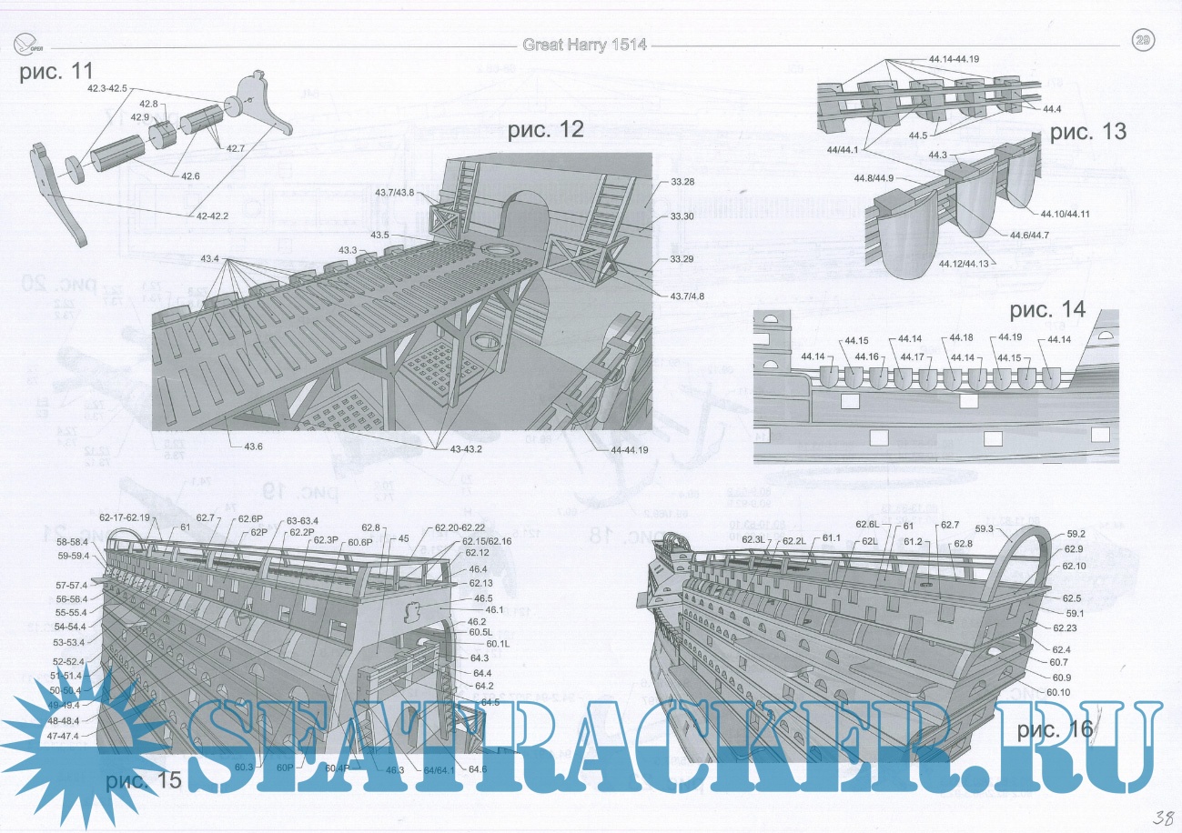 53 листа цветных выкроек и описаний для изготовления бумажной модели английской караки "Henry Grace a Dieu" 1514 года в масштабе 1:100