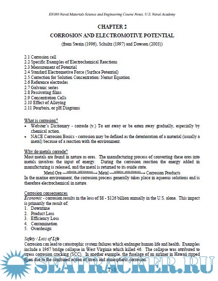 Description: This course addresses the optimal use of materials in ocean systems with emphasis on corrosion prevention, fracture mechanics, and basic materials science.