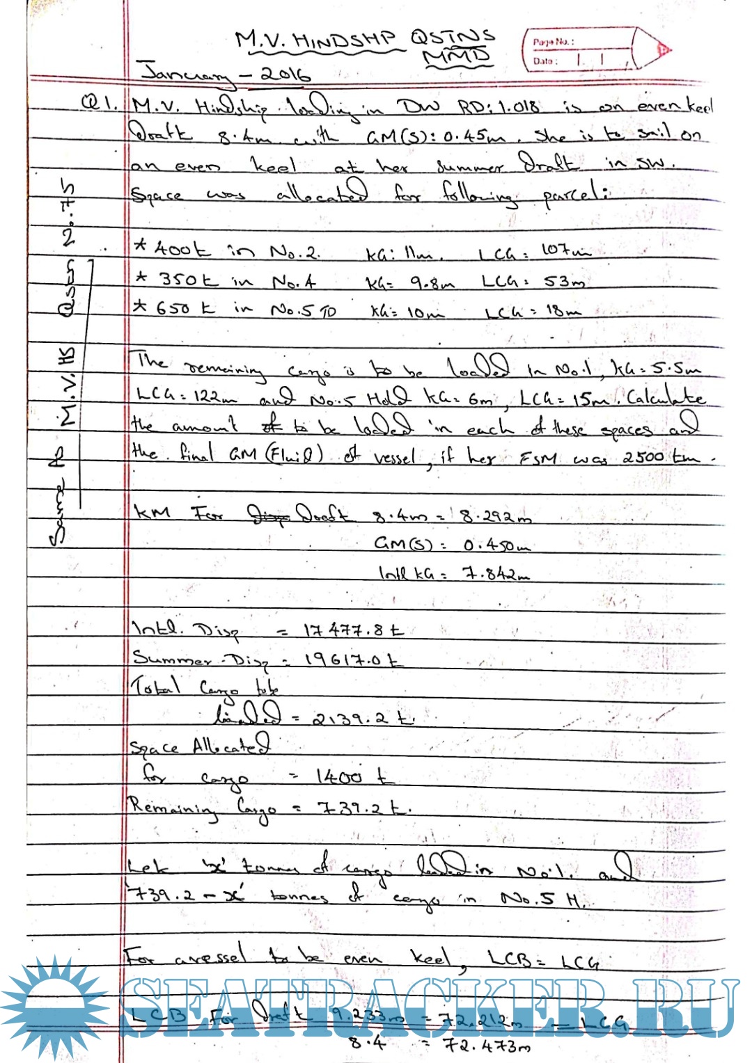 Cargo - Solved Numericals from Past Question Papers of Mercantile Marine Department (MMD), India…