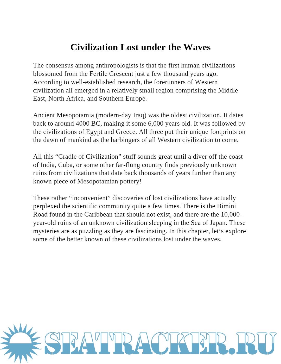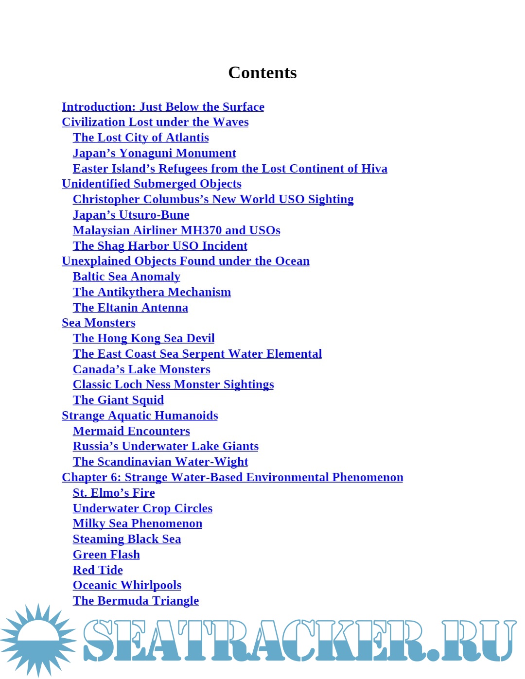 Within these chapters you will explore many unexplained underwater mysteries including:
