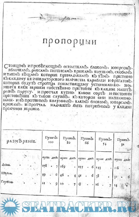 Описание: Хотя к 1725 г. Россия имела огромный по тому времени линейный флот, строился он мастерами, как правило, «на глазок», с использованием личного опыта, передававшегося «от деда к отцу и внуку». Это приводило к созданию не всегда удачных судов, которые в составе эскадры плохо взаимодействовали друг с другом из-за разных ходовых и мореходных качеств, разнокалиберности артиллерии. Для ликвидации такого «разнобоя» и унификации линейных судов (взаимозаменяемая артиллерия, рангоут и паруса) потребовалось создать единые нормы или, как их тогда называли «штаты пропорций».