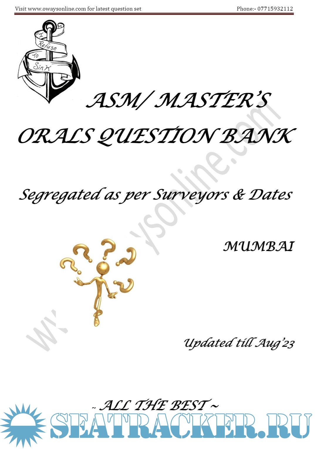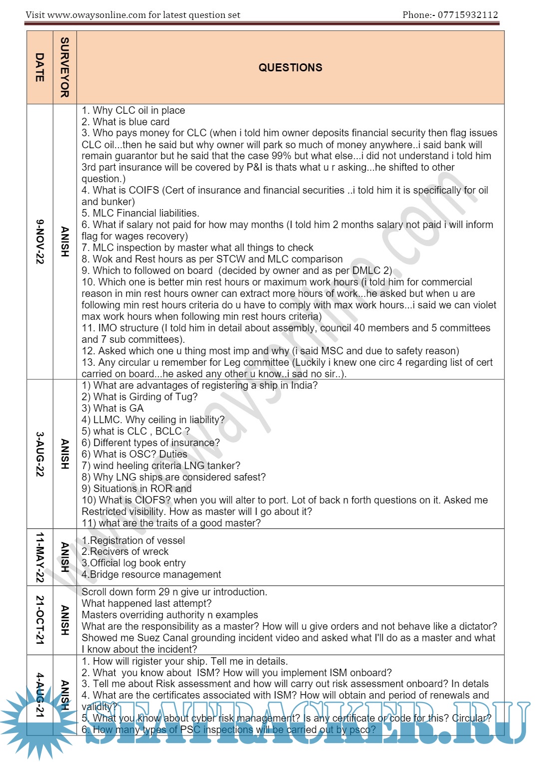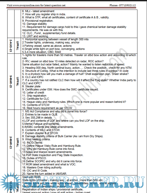 Description: ASM Orals Exams Surveyor Question Set (Mumbai & Delhi) DG / MMD Surveyors updated till Aug’23. Segregated as per Dates & Surveyors.