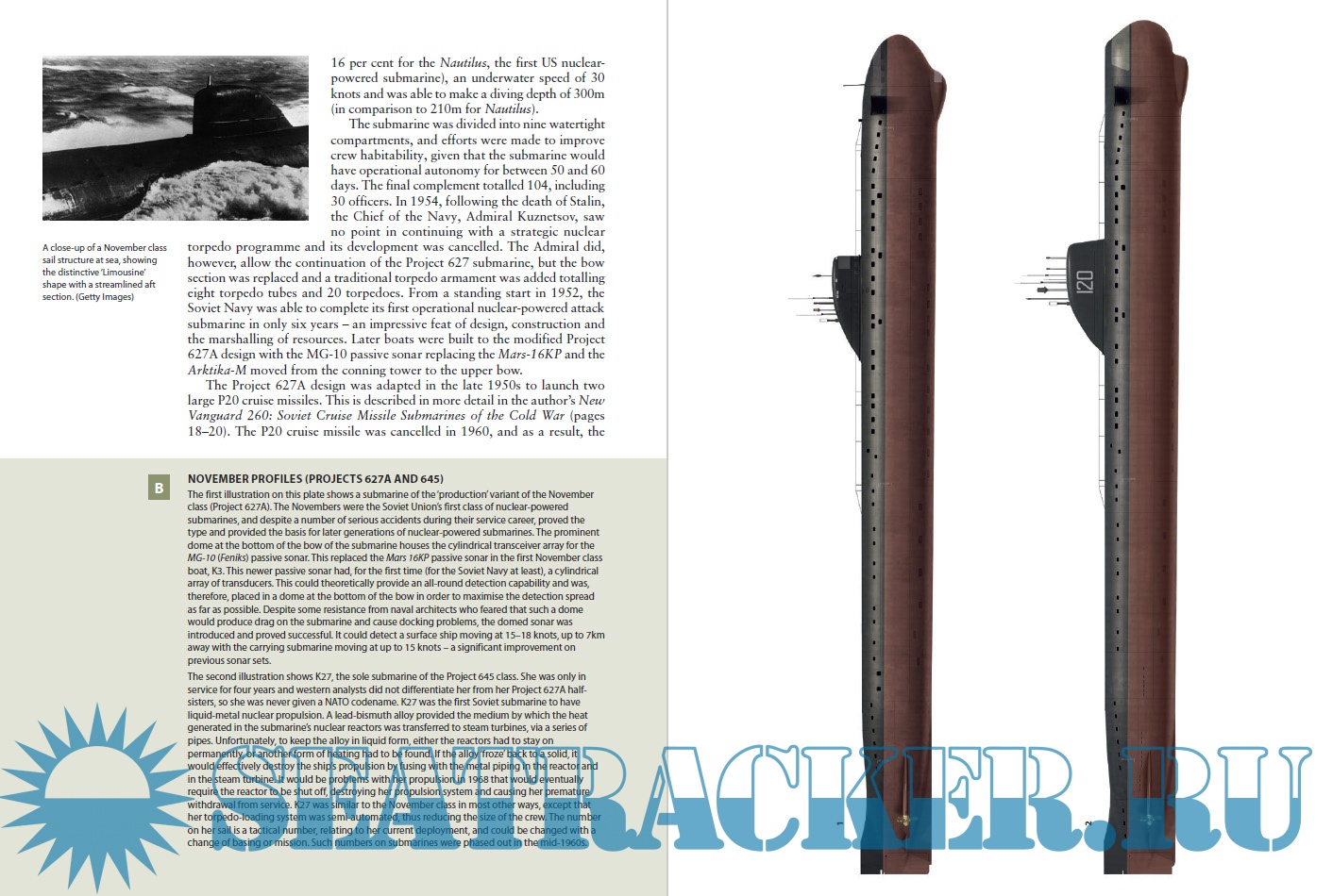 Year: 2022 Language: english Author: Edward Hampshire Genre: History Publisher: Osprey Publishing Edition: New Vanguard 287 Format: PDF Quality: eBook Pages count: 49 Description: This fascinating title explains and analyzes the history, technology, and service of the Soviet Navy's nuclear attack submarines, the formidable high-tech boats on the front line of the Cold War at sea. In this highly detailed book, naval historian Edward Hampshire reveals the fascinating history of the nuclear-powered attack submarines built and operated by the Soviet Union in the Cold War, including each class of these formidable craft as they developed throughout the Cold War period. The November class, which were the Soviet Union's first nuclear submarines, had originally been designed to fire a single enormous nuclear tipped torpedo but were eventually completed as boats firing standard torpedoes. The Alfa class were perhaps the most remarkable submarines of the Cold War: titanium-hulled (which was light and strong but extremely expensive and difficult to weld successfully), crewed with only thirty men due to considerable automation and 30% faster than any US submarines, they used a radical liquid lead-bismuth alloy in the reactor plant. The Victor class formed the backbone of the Soviet nuclear submarine fleet in the 1970s and 1980s, as hunter-killer submarines began to focus on tracking and potentially destroying NATO ballistic missile submarines. The Sierra classes were further titanium-hulled submarines and the single Mike-class submarine was an experimental type containing a number of innovations. Finally, the Akula class were being constructed as the Cold War ended, and these boats form the mainstay of the Russian nuclear attack submarine fleet today. This book explores the design, development, and deployment of each of these classes in detail, offering an unparalleled insight into the submarines which served the Soviet Union throughout the Cold War period. The text is supported by stunning illustrations, photographs, and diagrams of the submarines.