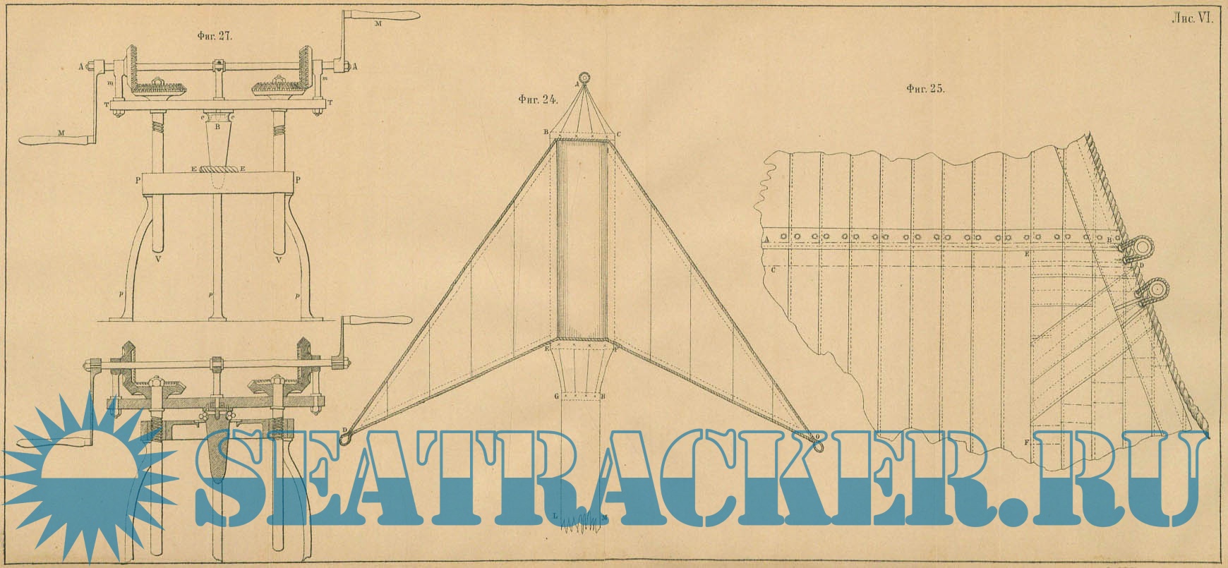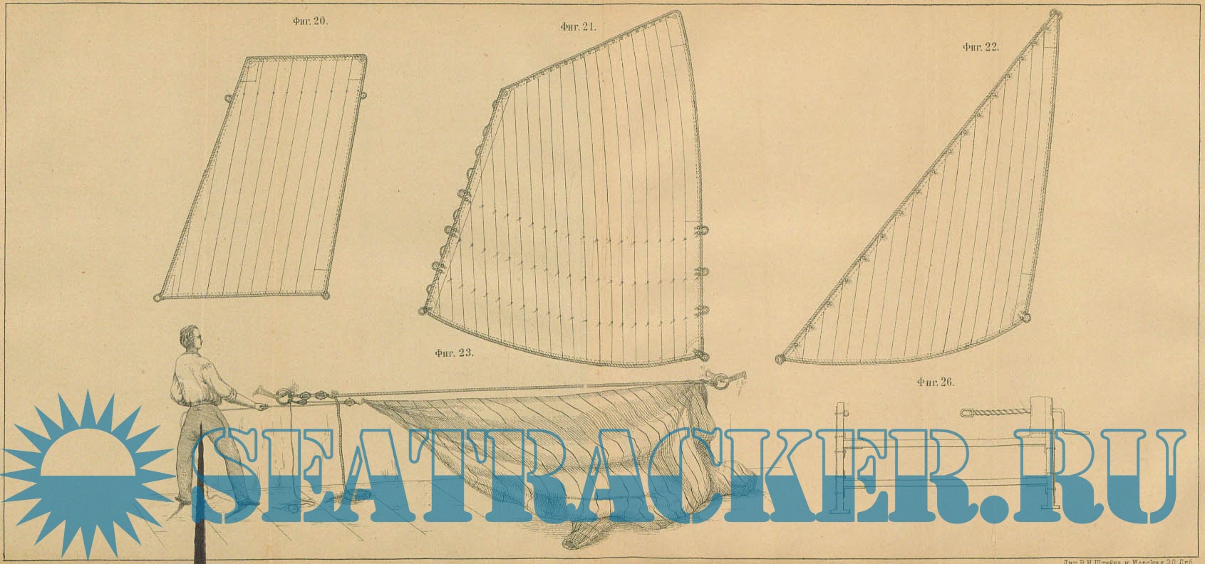 Описание: Чертежи парусов и приспособлений для их изготовления.