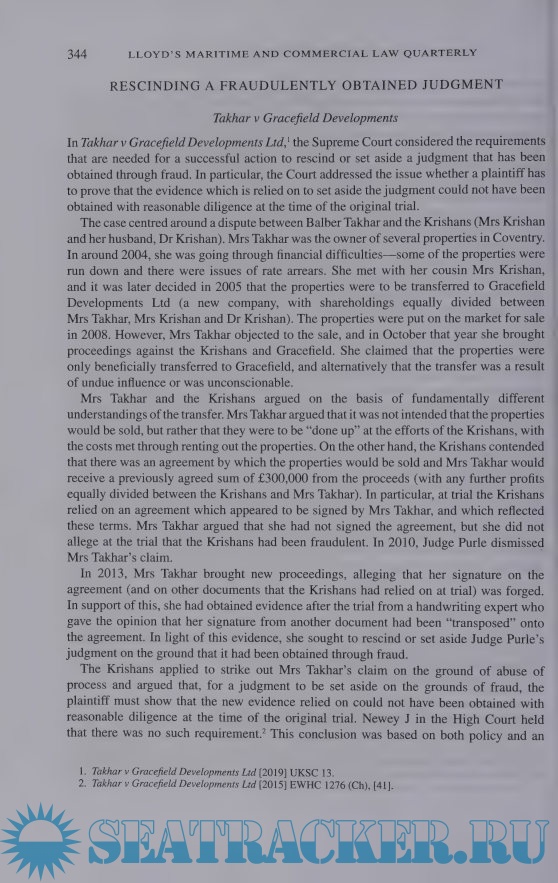Year: 2019 Language: English Author: F.D Rose Genre: Handbook Publisher: informa Format: PDF Quality: Scanned pages + text layer Pages count: 216 Description: Lloyd’s Maritime and Commercial Law Quarterly is the leading journal internationally on all aspects of shipping and maritime law, international trade, commercial law and associated areas of law. It includes original, thoroughly researched, rigorously analytical and detailed informative contributions for lawyers and practitioners in related areas on the current law and practice, and future development, of the law in the United Kingdom and internationally on arbitration, insurance, litigation, sales, shipping and commercial law generally.