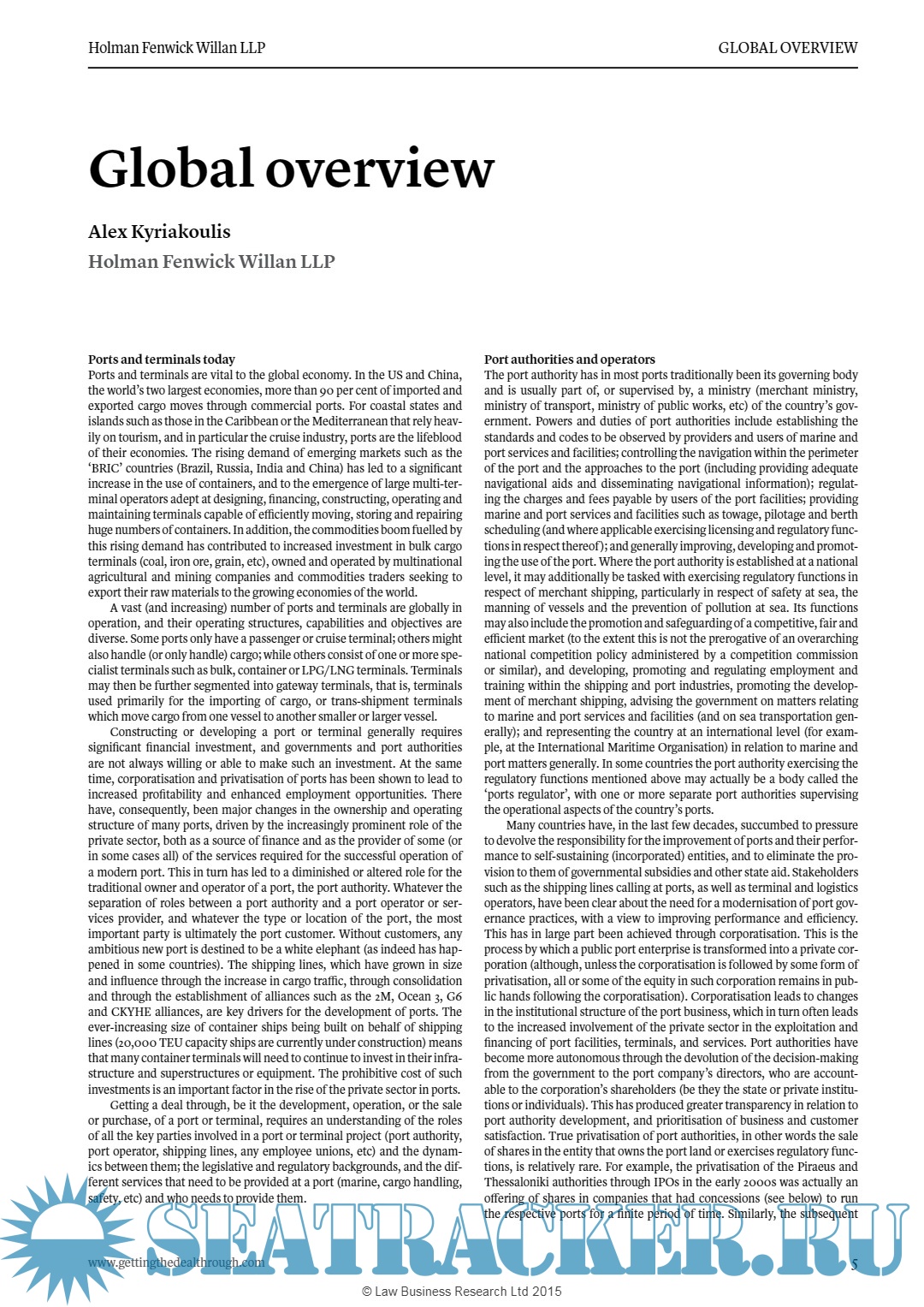Description: Getting the Deal Through is delighted to publish the first edition of Ports & Terminals, which is available in print, as an e-book, via the GTDT iPad app, and online at www.gettingthedealthrough.com.