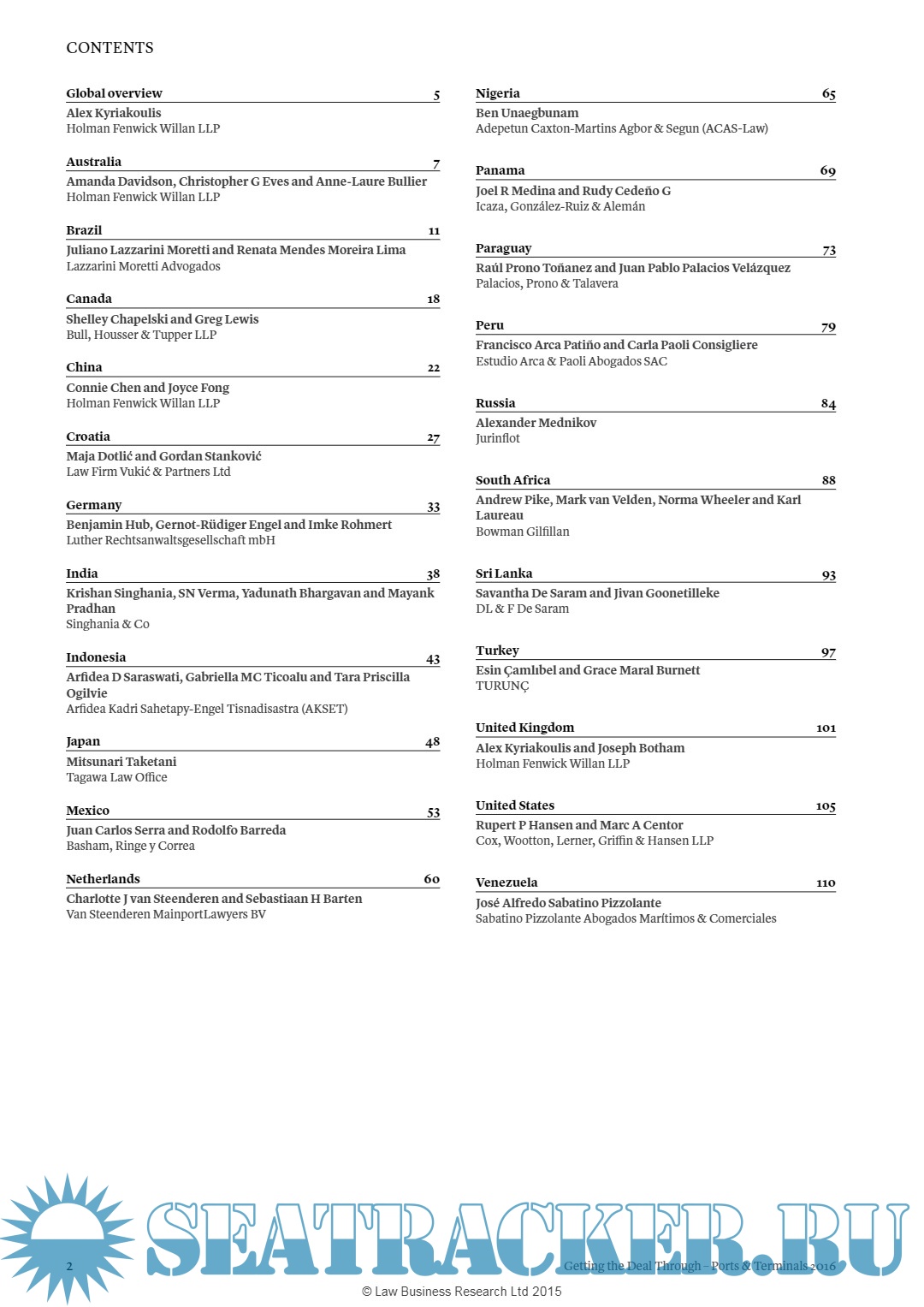 Year: 2016 Language: English Author: Alex Kyriakoulis Publisher: Gideon Roberton ISBN: 2397-0316 Format: PDF Quality: eBook Pages count: 116 Description: Getting the Deal Through is delighted to publish the first edition of Ports & Terminals, which is available in print, as an e-book, via the GTDT iPad app, and online at www.gettingthedealthrough.com. Getting the Deal Through provides international expert analysis in key areas of law, practice and regulation for corporate counsel, cross-border legal practitioners, and company directors and officers. Throughout this edition, and following the unique Getting the Deal Through format, the same key questions are answered by leading practitioners in each of the jurisdictions featured. Getting the Deal Through titles are published annually in print. Please ensure you are referring to the latest edition or to the online version at www.gettingthedealthrough.com. Every effort has been made to cover all matters of concern to readers. However, specific legal advice should always be sought from experienced local advisers. Getting the Deal Through gratefully acknowledges the efforts of all the contributors to this volume, who were chosen for their recognised expertise. We also extend special thanks to the contributing editor, Alex Kyriakoulis of Holman Fenwick Willan LLP, for his assistance in devising and editing this volume.