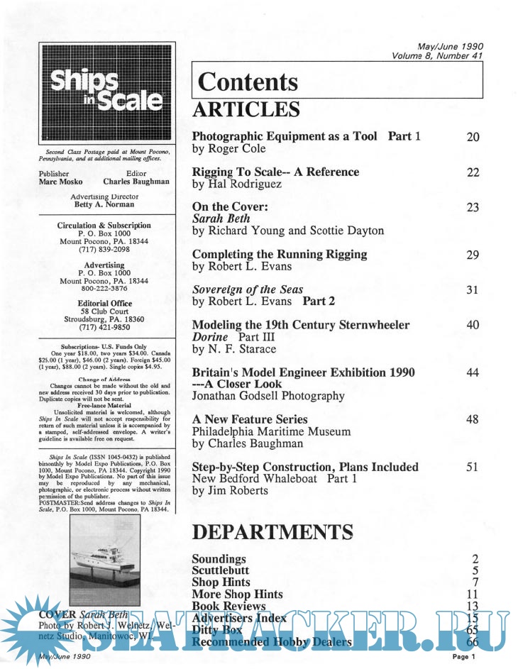 Year: 1990 Language: English Author: Scottie Dayton (Editor) Genre: Periodical (magazine) Edition: 1990-3 Format: PDF Quality: Scanned pages Pages count: 84 Description: Seaway is the home port for Seaways Ships in Scale magazine, the leading workshop and research magazine for the ship modeler. In the magazine we explore all levels of modeling experience, all types of ships, all kinds of models, all historical eras and all construction materials