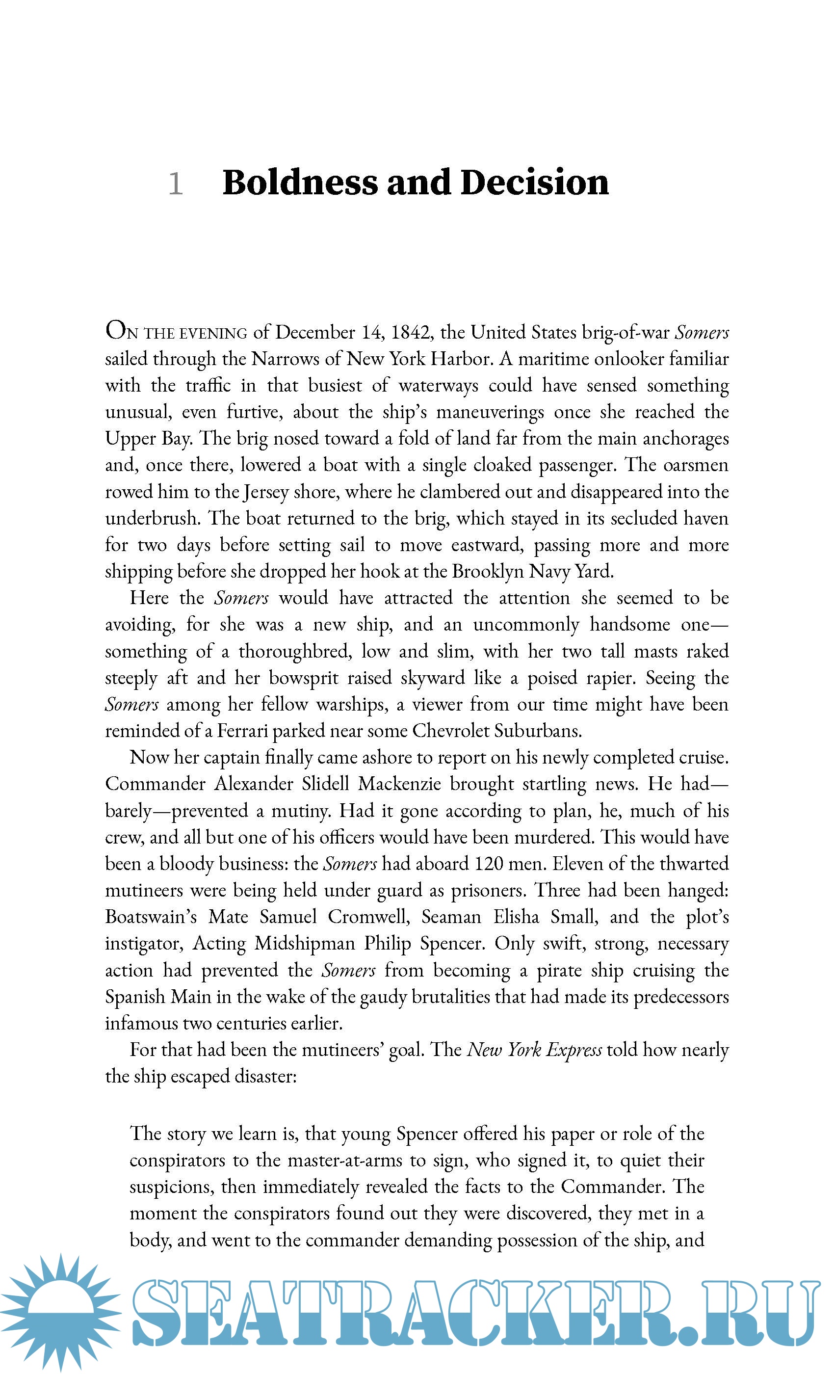 On December 16, 1842, the US brig-of-war Somers dropped anchor in Brooklyn Harbor at the end of a cruise intended to teach a group of adolescents the rudiments of naval life. But this seemingly harmless exercise ended in catastrophe. Commander Alexander Slidell Mackenzie came ashore saying he had narrowly prevented a mutiny that would have left him and his officers dead. Some of the thwarted mutineers were being held under guard, but three had been hanged: Boatswain’s Mate Samuel Cromwell, Seaman Elisha Small, and Acting Midshipman Philip Spencer, whose father was the secretary of war, John Spencer.