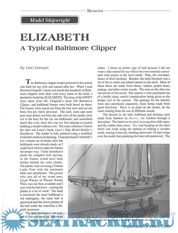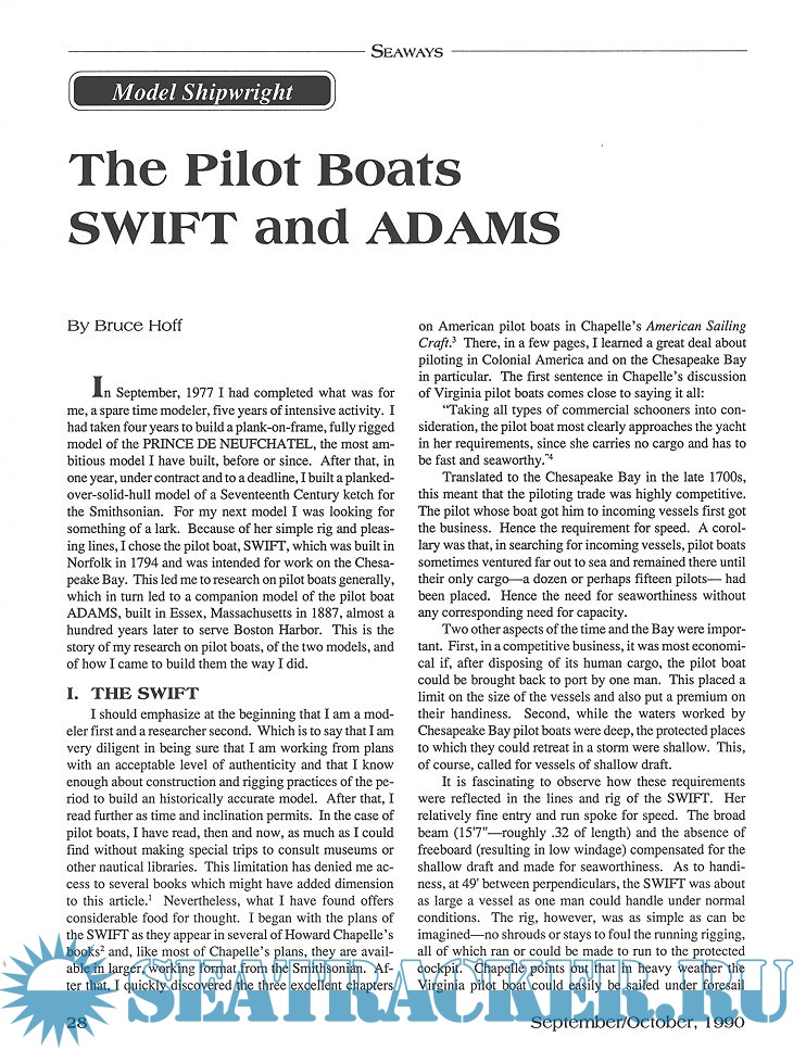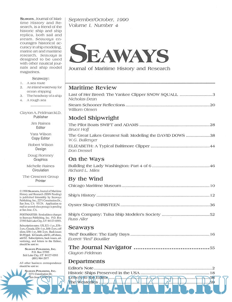 Year: 1990 Language: English Author: Scottie Dayton (Editor) Genre: Periodical (magazine) Edition: 1990-4 Format: JPEG Quality: Scanned pages Pages count: 74 Description: Seaway is the home port for Seaways Ships in Scale magazine, the leading workshop and research magazine for the ship modeler. In the magazine we explore all levels of modeling experience, all types of ships, all kinds of models, all historical eras and all construction materials
