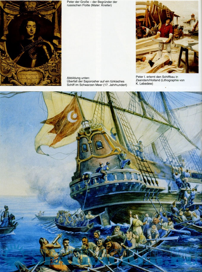 Description: Auf 179 Seiten, durchgehend bebildert mit Zeichnungen und vor allem zahlreichen zeitgenössischen Darstellungen, wird chronologisch der Aufbau der russischen Marine skizziert. Der Schwerpunkt liegt dabei, neben dem Aufbau von Werften, u. a. auf den Seeschlachten im Schwarzen Meer und der Ostsee, sowie dem Krim-Krieg (1853 bis 1855), dem russisch-japanischen Krieg (1904 - 1905) und der allgemeinen Expansionspolitik unter der Zarenherrschaft.