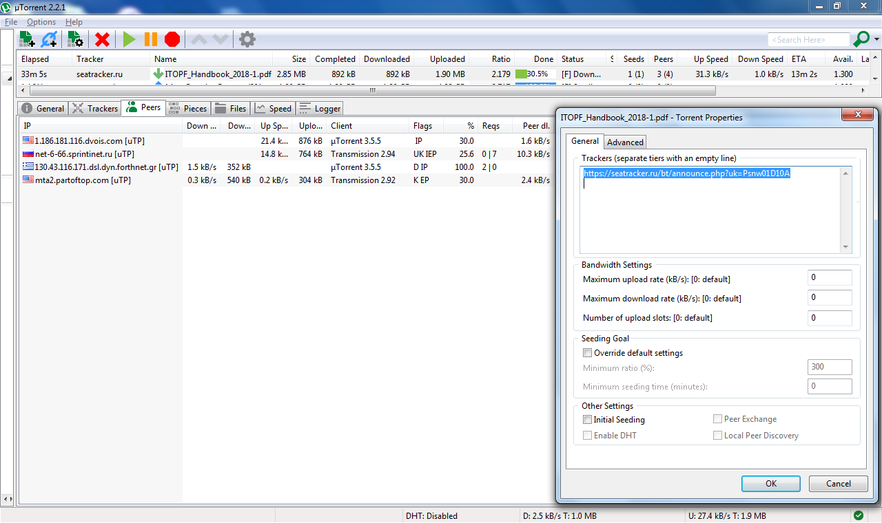 2. Disable DHT and peer Exchange in your torrent client