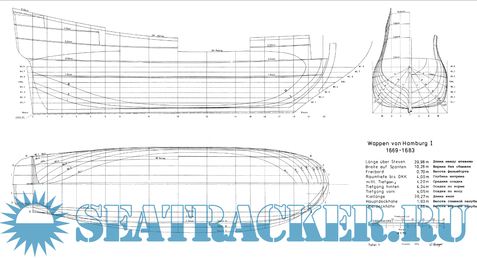 The WAPEN VON HAMBURG was built in the Deichtor shipyard in Hamburg by a Dutch shipbuilding master. The construction work started in spring of 1667 when the keel was laid down. The wood work was finished in 1668. The armaments were installed, and the ship took up service in 1669.