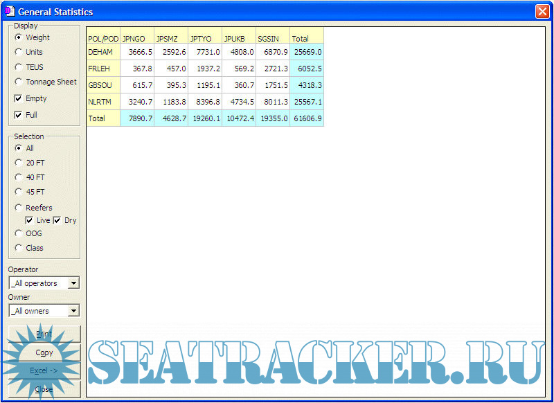 BV can handle standard BAPLIE files with and without line ends (see Remove line feed for explanation). BV can be used on any container vessel, regardless of number of bays, rows, and tiers. Number of containers, discharging ports are limited only by computer memory and BAPLIE file limitation. One floppy disk of 1.44 Mb may contain about 10000 containers, number will vary depending of size of information accompanying reefer and class containers. BV can filter, sort, print reports, find container and store last 4 working conditions for fast retrieval. Decoded files can be exported as DBF (dBase IV), CSV (comma separated value) and TXT (text files TAB delimited). BAPLIE file can be converted for use with to Easeacon@ stability program. Baplie Viewer can export container data to Excel sheet using preset template. What is BAPLIE? BAPLIE is set of instructions stored in text file, used to transmit information about all occupied places on board of a vessel to interested parties like ship-owner and the terminal operator in next port of call. Although the message is also suitable to transmit information about empty places this feature is not used. In generally, only complete messages “BAPLIE” have to be transmitted, whereas only occupied stowage locations, either by equipment or special cargo (break bulk), should be mentioned. The message can be transmitted to the vessel (i.e. via modem or by floppy disk) eliminating the use of the paper “master” plan. Who controls BAPLIE instructions? BAPLIE is designed by the SMDG (User group for Shipping Lines and Container terminals). Full name of the BAPLIE file is “UN/EDIFACT UNITED NATION STANDARD MESSAGE (UNSM) BAYPLAN/STOWAGEPLAN OCCUPIED AND EMPTY LOCATION MESSAGE” (BAPLIE).