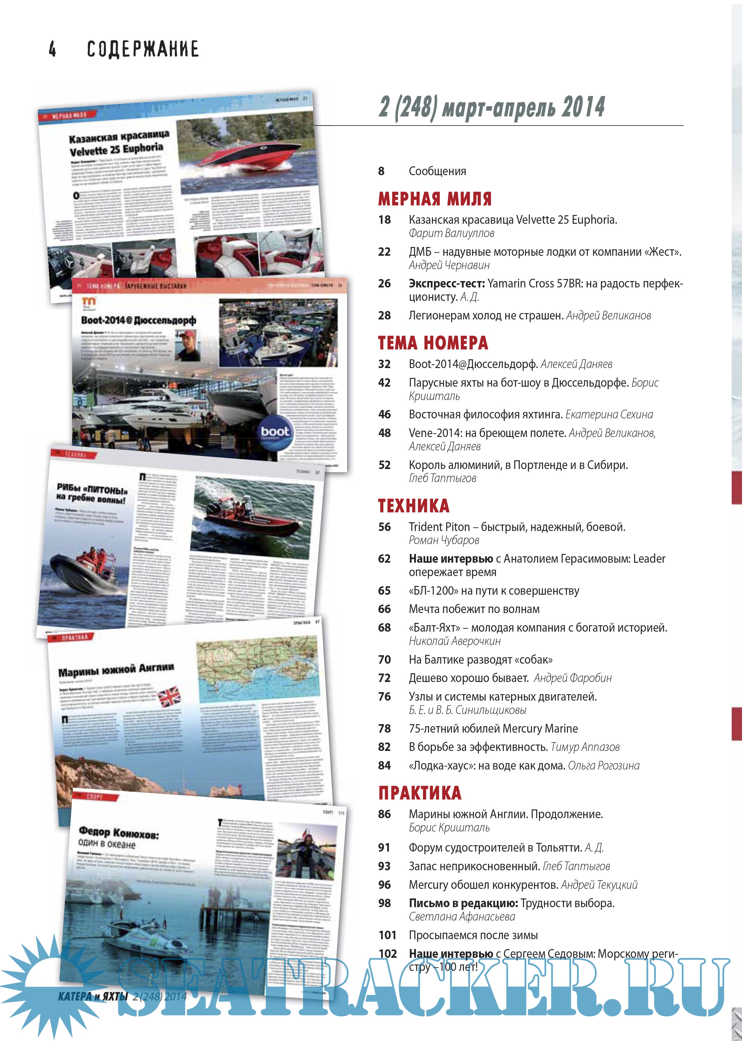 Основная тематика журнала - отдых и спорт на воде, создание и эксплуатация техники для парусного, водно-моторного, воднолыжного спорта, водных видов туризма. Наша основная задача - сделать все возможное для того, чтобы водные виды спорта и отдыха стали наиболее популярными в России.
