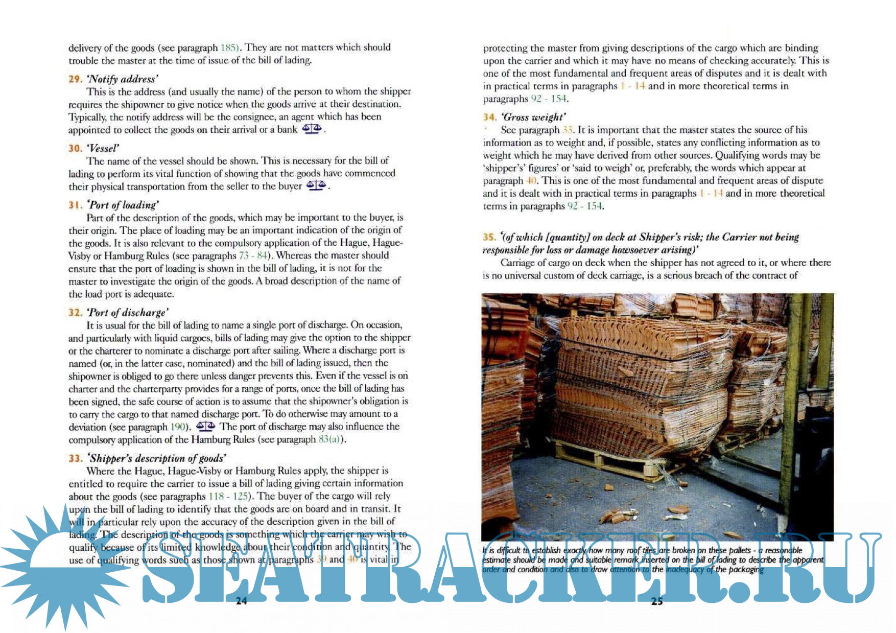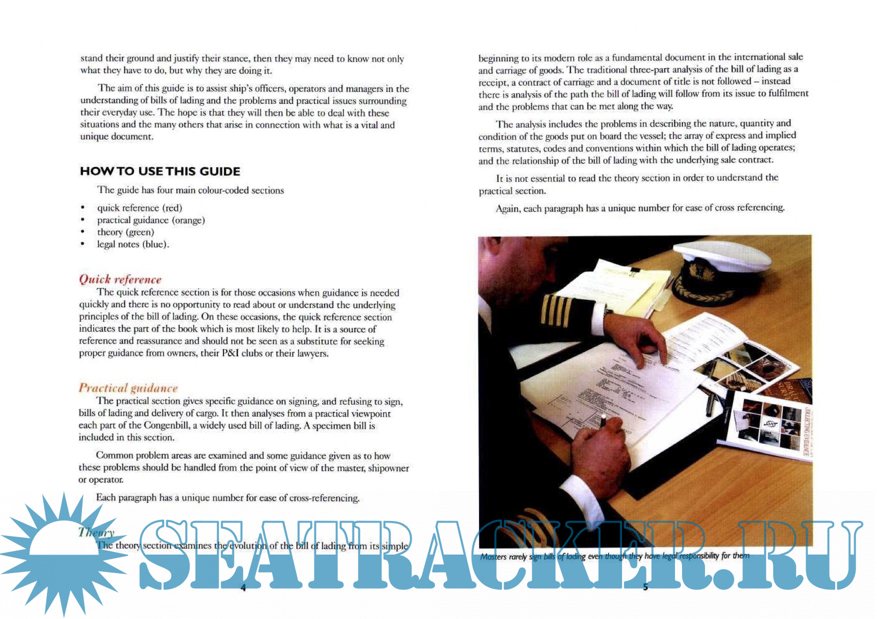 Description: Introduction, loss prevention and bills of lading, note on the third edition, general notes. Quik reference, the bills of lading - a quick guide to its role and its problems. Practical guidance, signing bills of lading, delivering the cargo at discharge port.