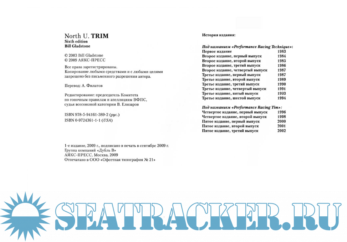 Описание: Книга Билла Гладстоуна «Настройка гоночной яхты» - наиболее полный источник знаний по настройке лодки и управлению ее скоростью. Именно эти умения, утверждает Гладстоун, лежат в основе пирамиды гоночного мастерства. Книга выдержала уже 5 переизданий начиная с 1983 г.