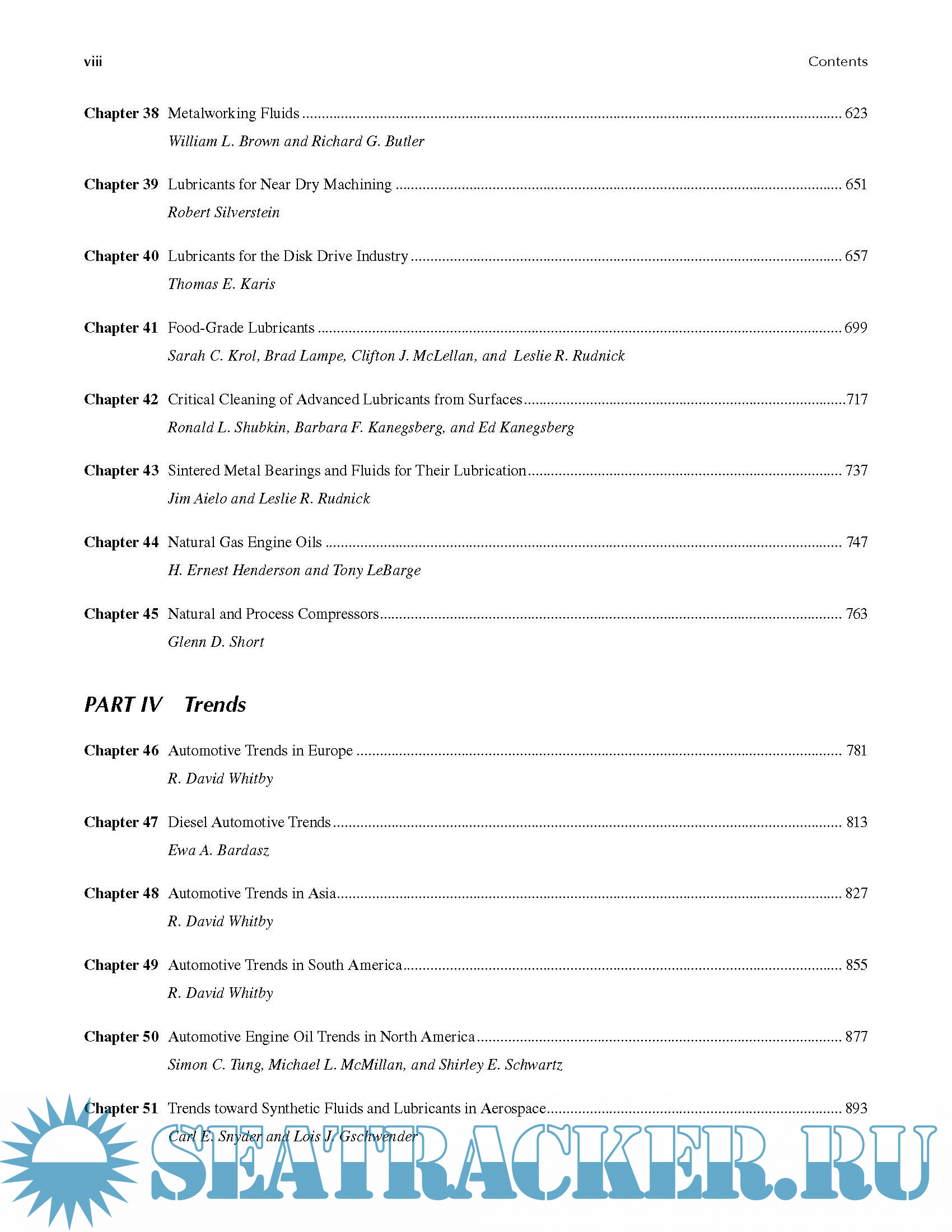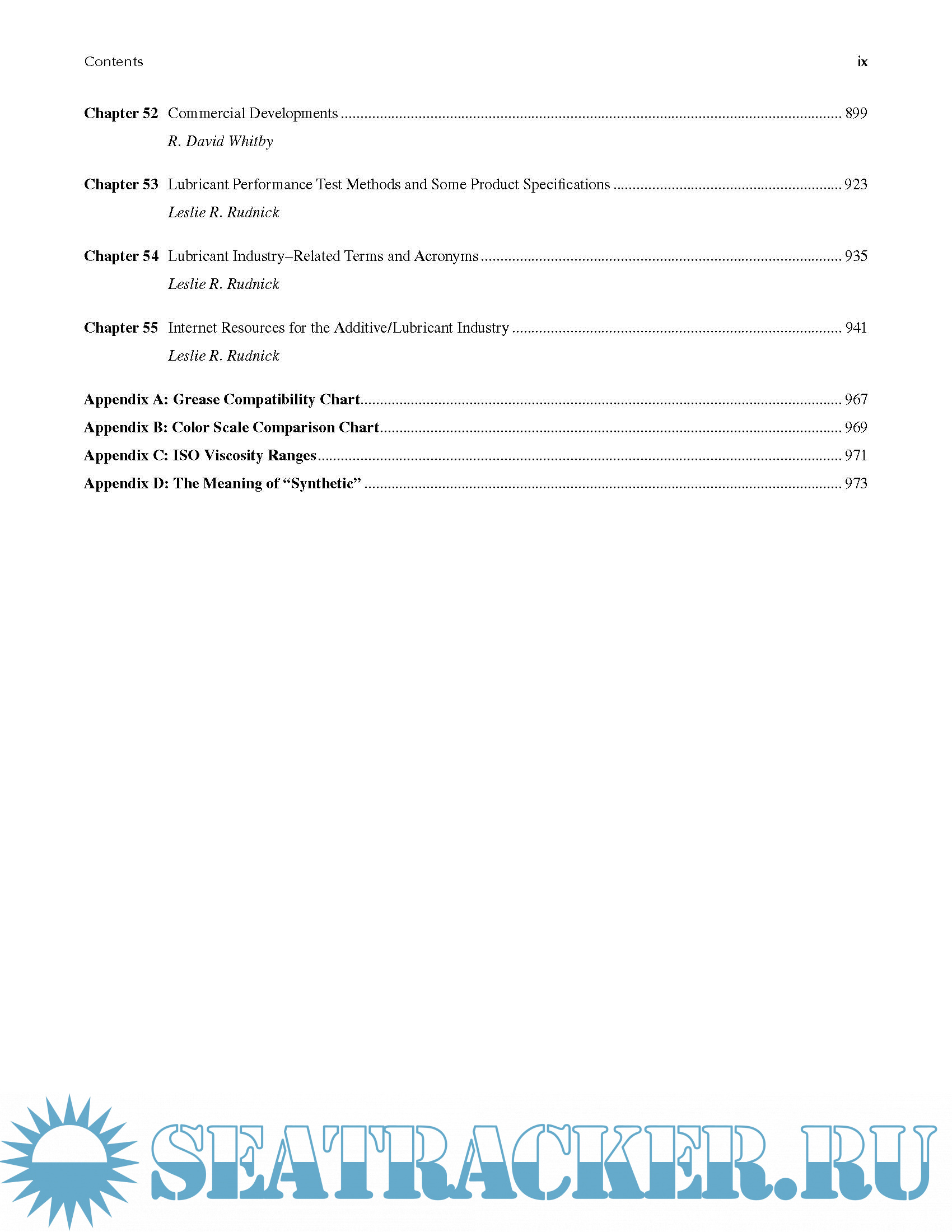 Year: 2013 Language: english Author: Leslie R. Rudnick Genre: Technical book Edition: 2nd Format: PDF Quality: eBook Pages count: 1018 Description: This book is comprised of a total of 55 chapters and includes a CD of the last chapter, a compilation of Internet urls that can be directly accessed from the entries. This second edition follows the format of the first edition, but it has greatly expanded and updated to include new chapters or chapters with new authors on automatic and continuously variable transmission fluids, fluids for food-grade applications, lubricants for powder metal bearings, natural gas engine oils, natural gas and process compressor oils, and re- refined oils. The book is divided into four parts as follows: Part I—Fluids, Part II—Bio-Based Lubricants, Part III—Applications, Part IV–Trends, followed by Appendices.