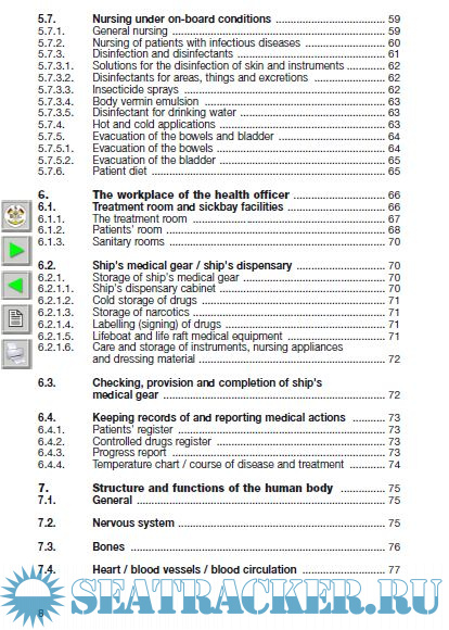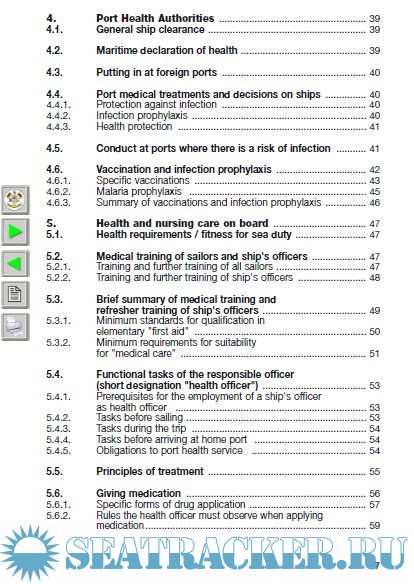 Description: This instruction book provides captains and ship's officers with a manual with which, after the appropriate medical training, they will be placed in the position of being able to implement health protection on board, prevent health hazards recognize and treat illnesses, help with urgent emergencies, with doctor's advice via the radio when required, according to the specific shipping conditions.