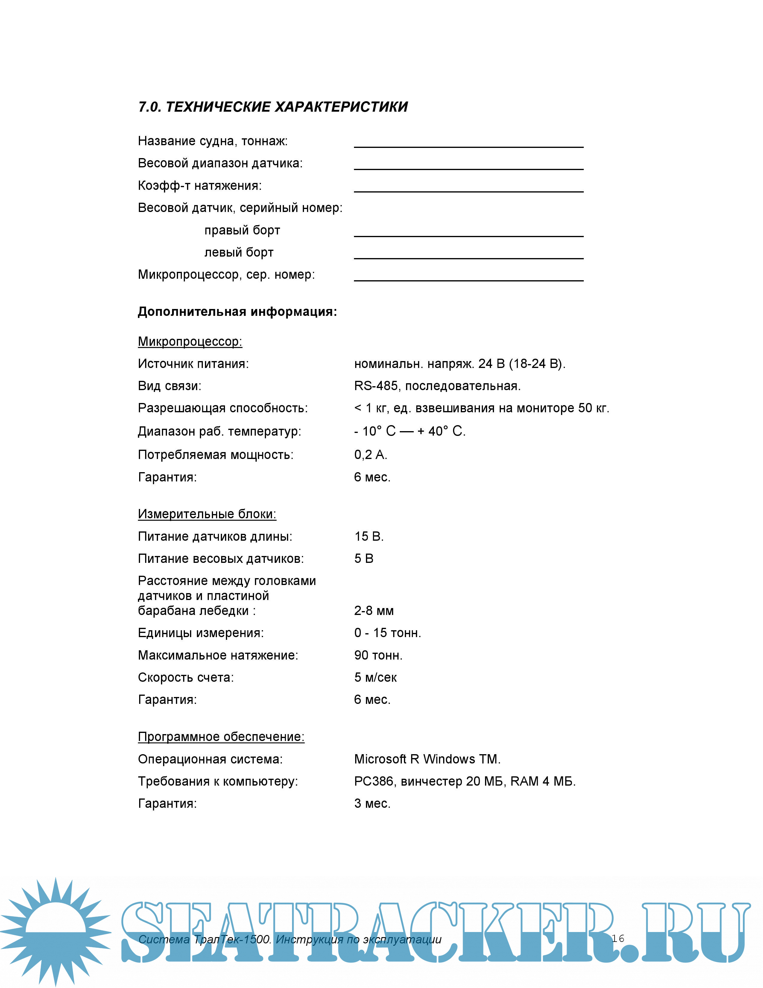 7.0. ТЕХНИЧЕСКИЕ ХАРАКТЕРИСТИКИ ........................................................16