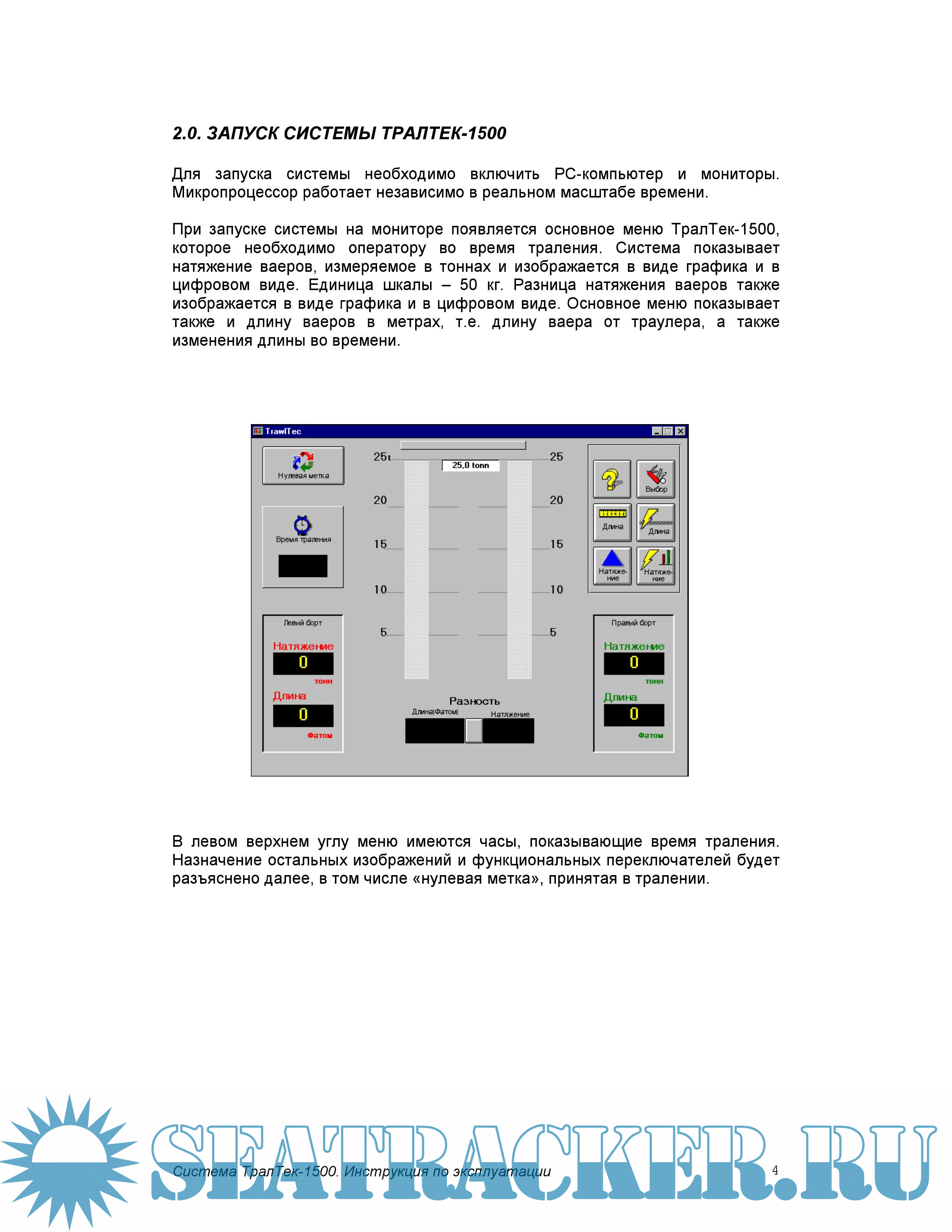 2.0. ЗАПУСК СИСТЕМЫ ТРАЛТЕК-1500.............................................................4
