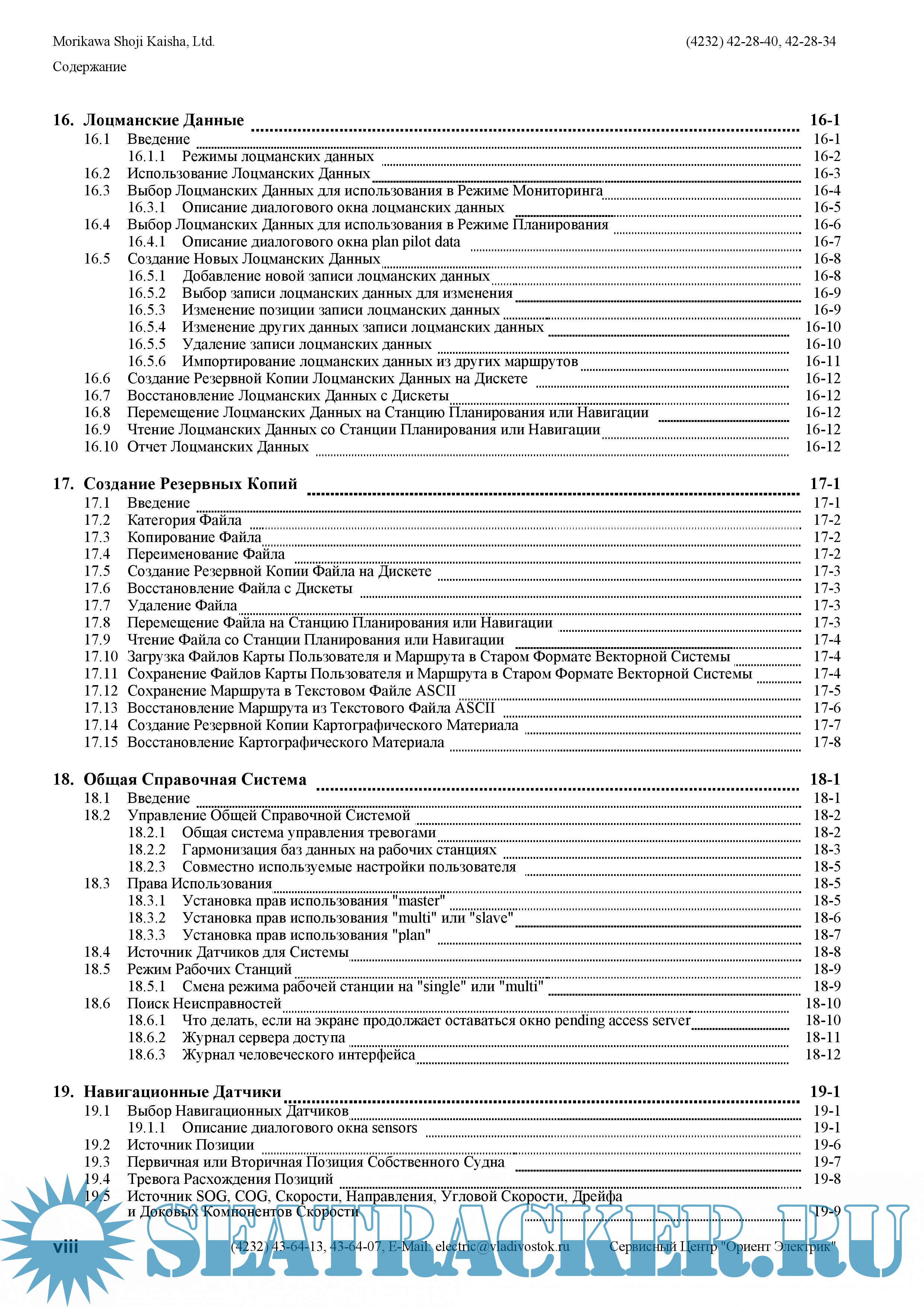 Год выпуска: 2004 Язык: русский Автор: Furuno Жанр: Руководство Формат: PDF Качество: Изначально компьютерное (eBook) Количество страниц: 582 Описание: ЭКНИС серииFEA-2107 – это продукт огромного опыта фирмыFURUNO в области компьютерной технологии и морской электроники. Он отвечает требованиям РезолюцииIMO A.817(9), IEC 61174 и другим соответствующим стандартам. ЭКНИС отображает электронные карты, навигационные линии, данные САРП, цели АИС и другие навигационные данные на дисплее с высоким разрешением размером20.1 дюйма(FEA-2107) или23.1 дюйма(FEA-2807). FEA-2107-BB поставляется без монитора, позволяя вам использовать покупной монитор по своему выбору. Основные особенности ЭКНИС следующие • Непрерывный мониторинг позиции судна через обработку многоканальным фильтром Кальмана с использованиемGPS, DPGS, SDME (морское оборудование измерения скорости и пройденного расстояния) • Функции предварительной прокладки(планирования) и мониторинга маршрута • Широкий спектр функций предупреждения, обеспечивающих более безопасную и эффективную навигацию • Возможность наложения радиолокационного изображения на электронные карты(факультативная) • Предупреждения о возможности посадки на мель, безопасные изобаты • Картографическая база данных, загружаемая и обновляемая при помощиCD ROM • Данные цели от РЛС/САРП и транспондера АИС, помогающие избежать столкновение. (Транспондер АИС и САРП) Настоящее руководство приводит следующую информацию: • Конфигурация системы • Интерпретация экрана и использование блока управления • Подготовка к выходу в рейс • Правила замены бумажных карт электронными • Управление картографическим материалом • Ручные обновления, которые используются для ручного ввода Извещений мореплавателям и предупреждений Navtex • Расчет картографических тревог • Предварительная прокладка(планирование) и мониторинг маршрута • Различные инструменты пользователя, такие как карты пользователя, лоцманские данные и навигационные инструменты • Операции по созданию резервных копий • Общая Справочная Система • Использование навигационных датчиков • Использование целей САРП • Использование целей АИС • Наложение радиолокационного изображения • Различные функции записи • Обязательная информация о принятой системе координат, используемой картами и ЭКНИС • Операции, связанные с управлением судном • Список тревог