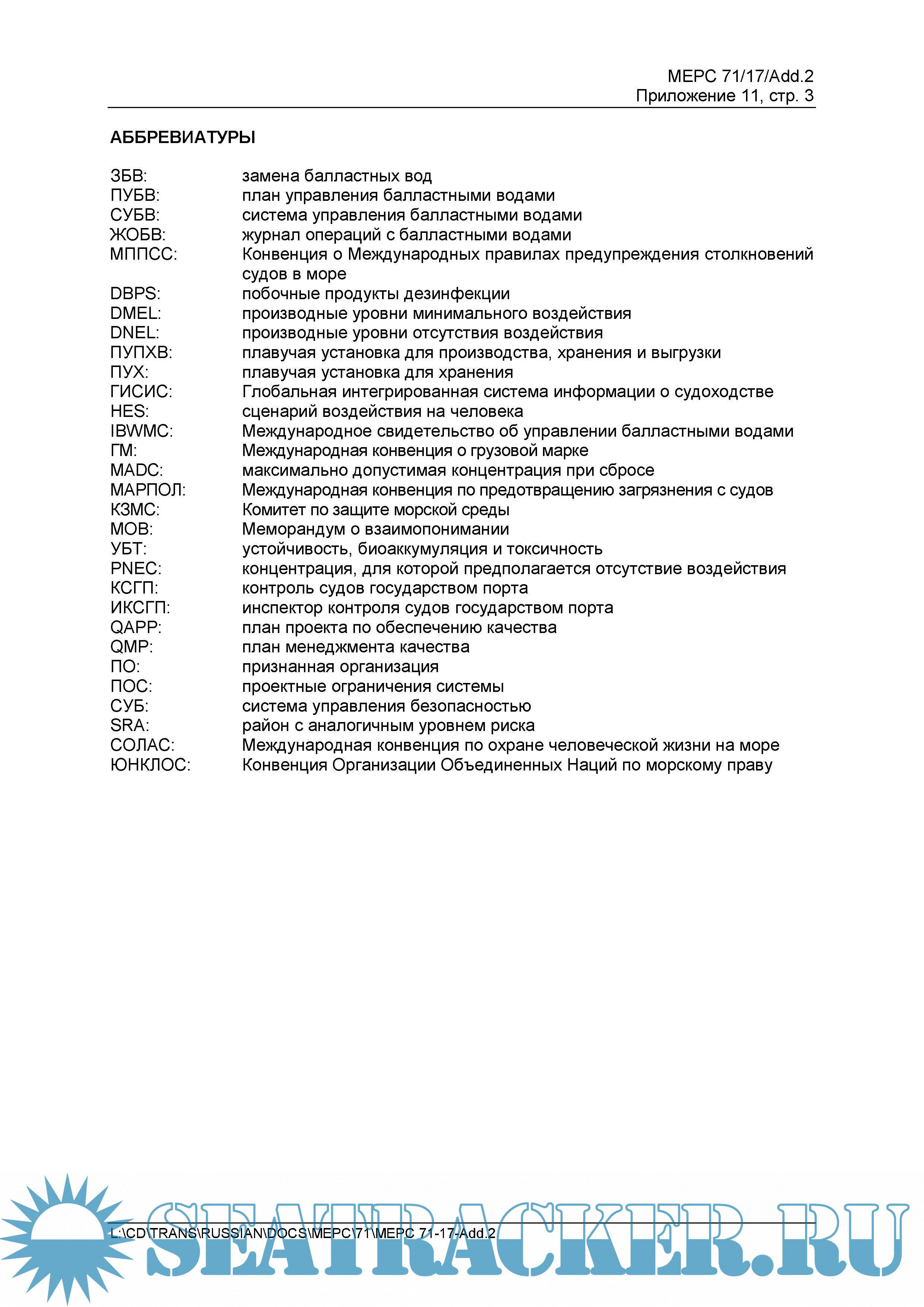 Подчеркивается, что Приложение к Конвенции – это живой документ, который развивается с течением времени, после того как Конвенция вступит в силу. Не предполагается, что настоящее наставление будет полностью откорректированным по состоянию вопросов на современном этапе, и читателю настоятельно предлагается обращаться к обновлениям Конвенции и соответствующим руководствам, содержащимся в документах и публикациях ИМО.