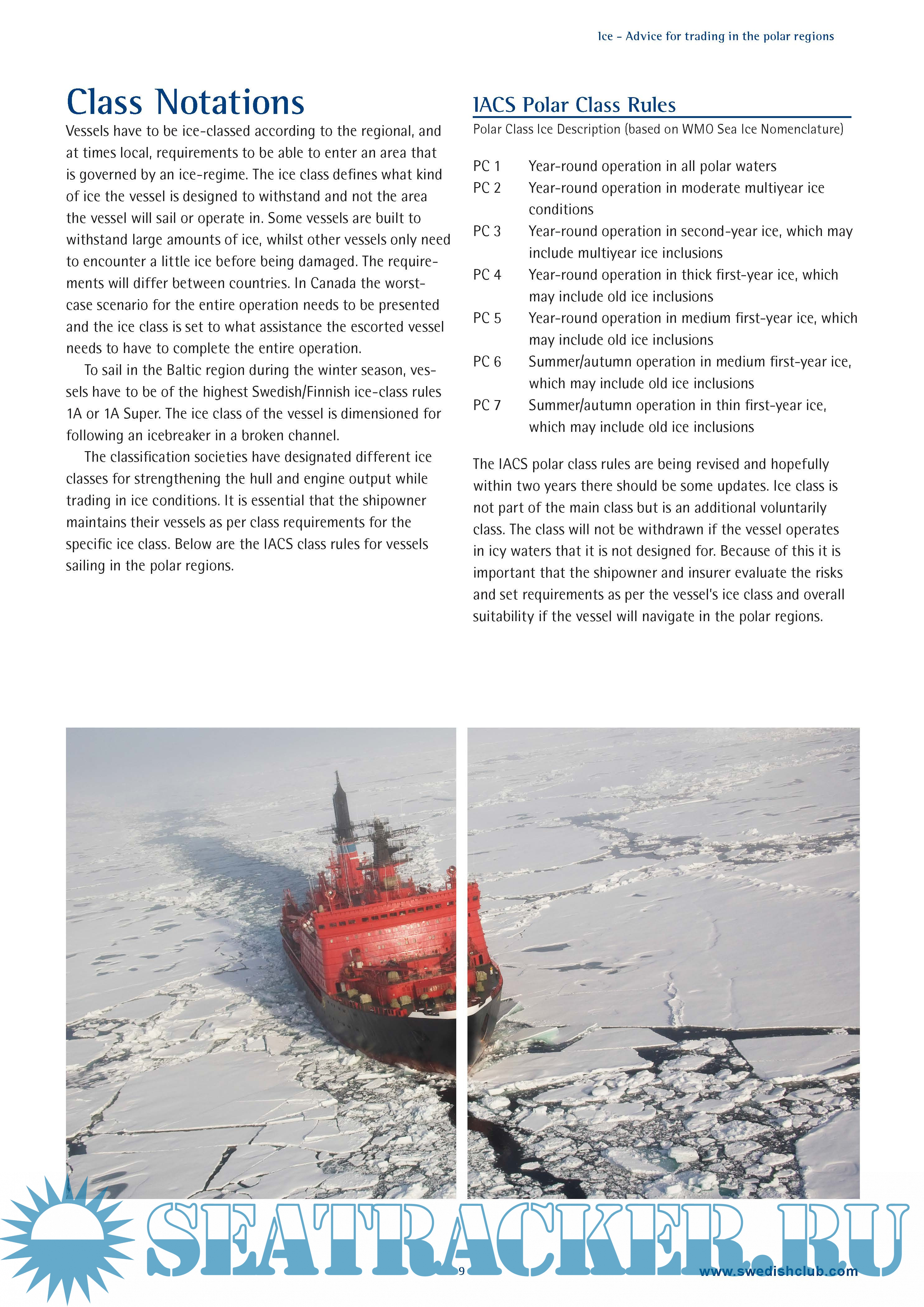 Year: 2014 Language: english Author: Swedish P&I Club Genre: Guide Format: PDF Quality: eBook Pages count: 16 Description: The wealth of natural resources in the arctic region is enormous. It is believed that up to a quarter of the world’s undiscovered, recoverable hydrocarbon reserves are in the arctic seabed. There are also huge additional iron, gold, zinc and diamond deposits which will become more accessible if the arctic ice continues to diminish. Shipping activity in the polar regions is a complicated endeavour. It seems that longer ice-free summers in the arctic are making operations in the polar regions more accessible in combination with the development of new technology. What seemed impossible before because of the rough weather and thick ice is now becoming possible. This activity will probably increase even further in the future because the search for natural resources such as oil, gas and metals is unlikely to stop. Much of the increased activity in the polar regions will be from offshore operations traffic involved in exploration and extraction of oil and gas. This will increase transports from and to the arctic ports in the region. The polar regions consist of the Arctic and Antarctic.