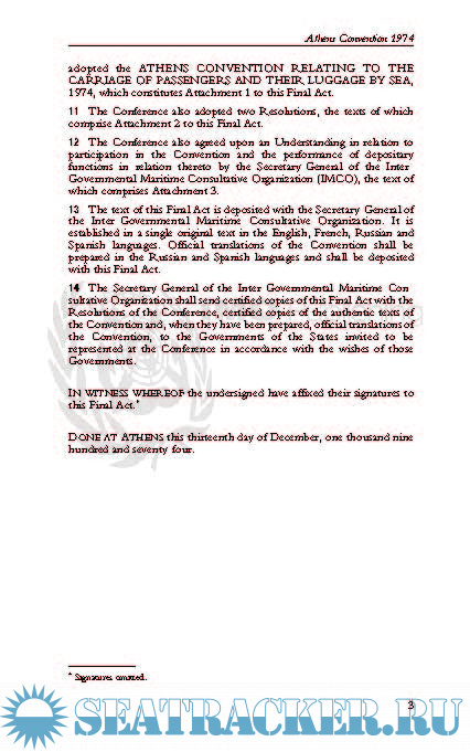 Final Act of the International Conference on the Revision of the Athens Convention relating to the Carriage of Passengers and their Luggage by Sea, 1974;