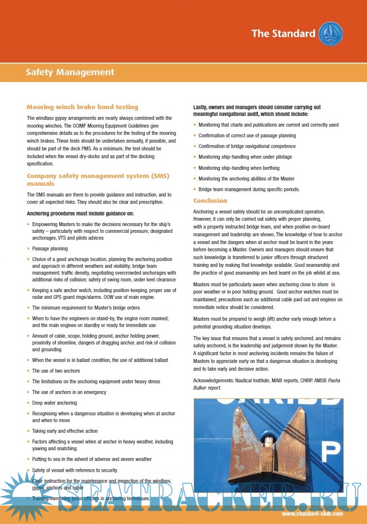 Description: A concise and helpful guide by The Standard Club on anchoring and related procedures.