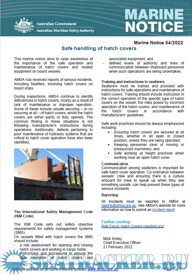 Description: Marine notices provide important safety related information, general guidance and details about forthcoming changes to legislation to the shipping and maritime community.