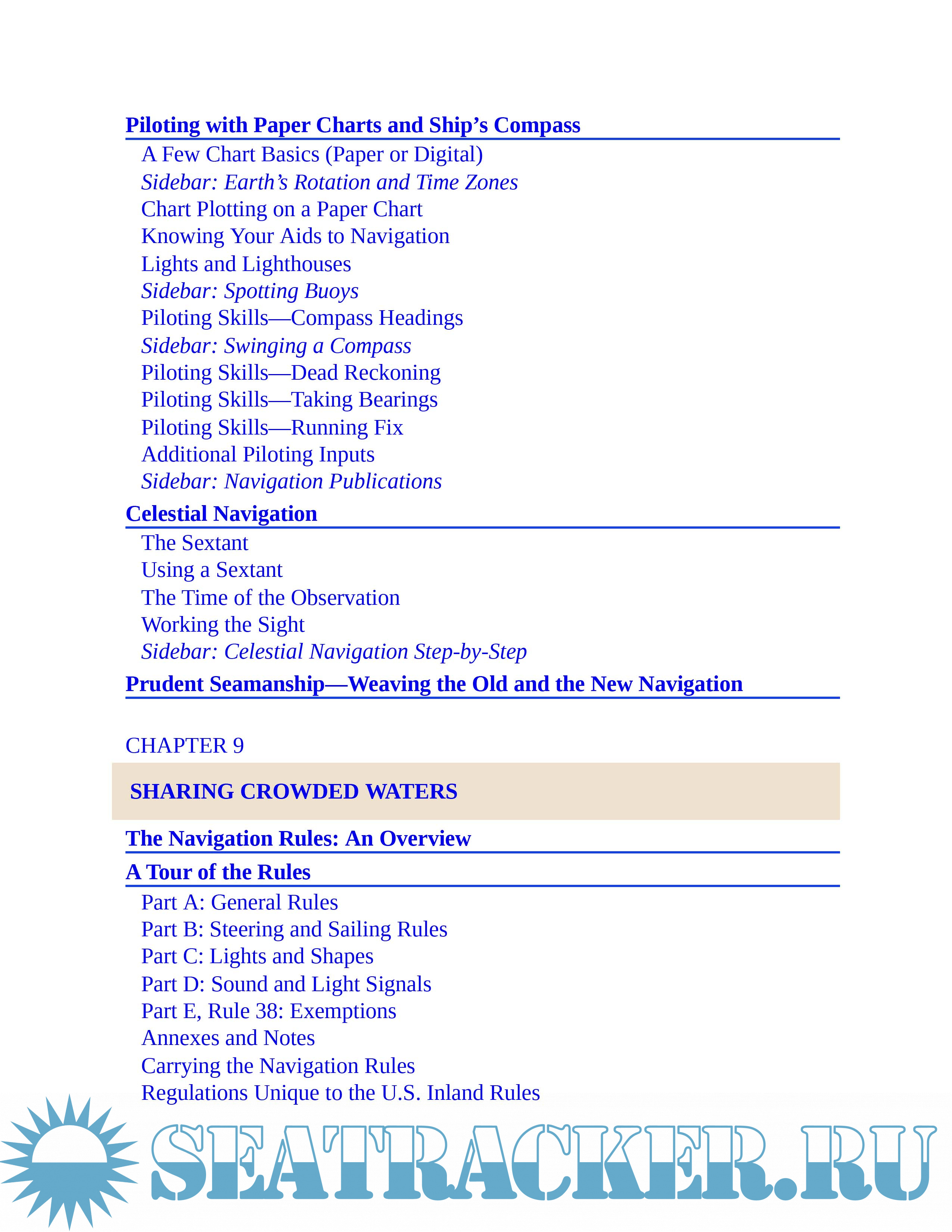 Year: 2015 Language: english Author: Ralph Naranjo Genre: Manual Publisher: McGraw-Hill Education ISBN: 978-0-07-179158-8 Format: EPUB/PDF Quality: eBook Pages count: a lot Description: Wind, waves, weather, and water demand the practiced art of seamanship... Each time a sailboat casts off its docklines the sailor enters a marine realm that demands knowledge, preparedness, vigilance, and coolheadedness--these qualities are the foundation of good seamanship. Both an art as well as a science, seamanship is also the mastery of numerous practical details, from the best choice of line for a jib sheet to an accurate assessment of the passage of a deep low-pressure system. Around-the-world sailor Ralph Naranjo--technical expert, ocean racer, former Vanderstar Chair at the U.S. Naval Academy--delivers a priceless reference for anything that comes up while on the water, sharing all the knowledge today's sailors need to "hand, reef, and steer"--an enduring reference to the collective skills of the bluewater sailor. Naranjo's vast knowledge is supported by real-life examples of sailing mishaps, sample itineraries, vibrant photos, as well as first-hand accounts and sidebars from top sailors and marine experts, including Shelia McCurdy, Chuck Hawley, Lee Chesneau, and Paul Miller, N.A. Seamanship is a dynamic art, demanding full attention from the sailor amidst a constant flow of information and knowledge. The Art of Seamanship will improve your problem-solving skills, whether daysailing around the harbor or voyaging around the world... Additional info: PDF file was converted from EPUB, so it's highly likely not match to print version )
