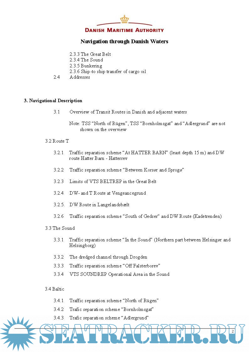 Description: In spite of the good buoyage, navigation through Danish waters presents, however, in certain areas difficulties to large ships due to narrow waters, sharp bends, strong currents and shallow depths. In all parts of Danish waters intensive fishing is carried out by large and small fishing vessels, and a large number of pleasure craft are sailing in these waters during the summer season. This publication is undergoing changes and updates. Therefore not all text, figures and charts can be expected up to date.