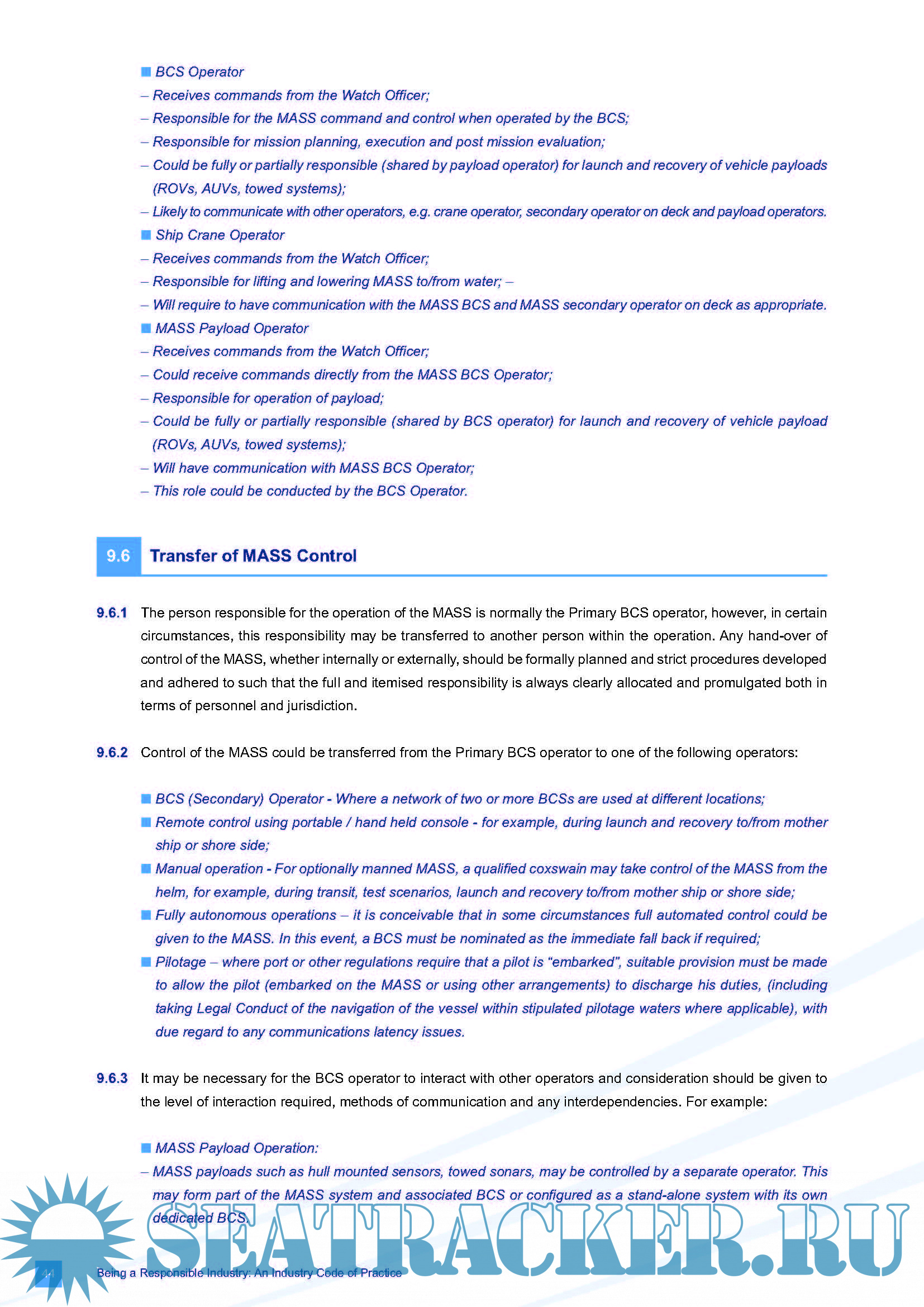 Year: 2017 Language: english Author: Society of Maritime Industries Genre: Convention (rules) Format: PDF Quality: eBook Pages count: 84 Description: The development of Maritime Autonomous Surface Ships (MASS) has continued at a very significant pace over the last few years with more vessels entering operation all the time. They come in a variety of sizes and have a very diverse set of operational capabilities which all place their own unique demands on those who own and operate them and the remainder of the Maritime Community. MASS are an element of the development of Robotics and Artificial Intelligence (RAI) systems across the various transport sectors.