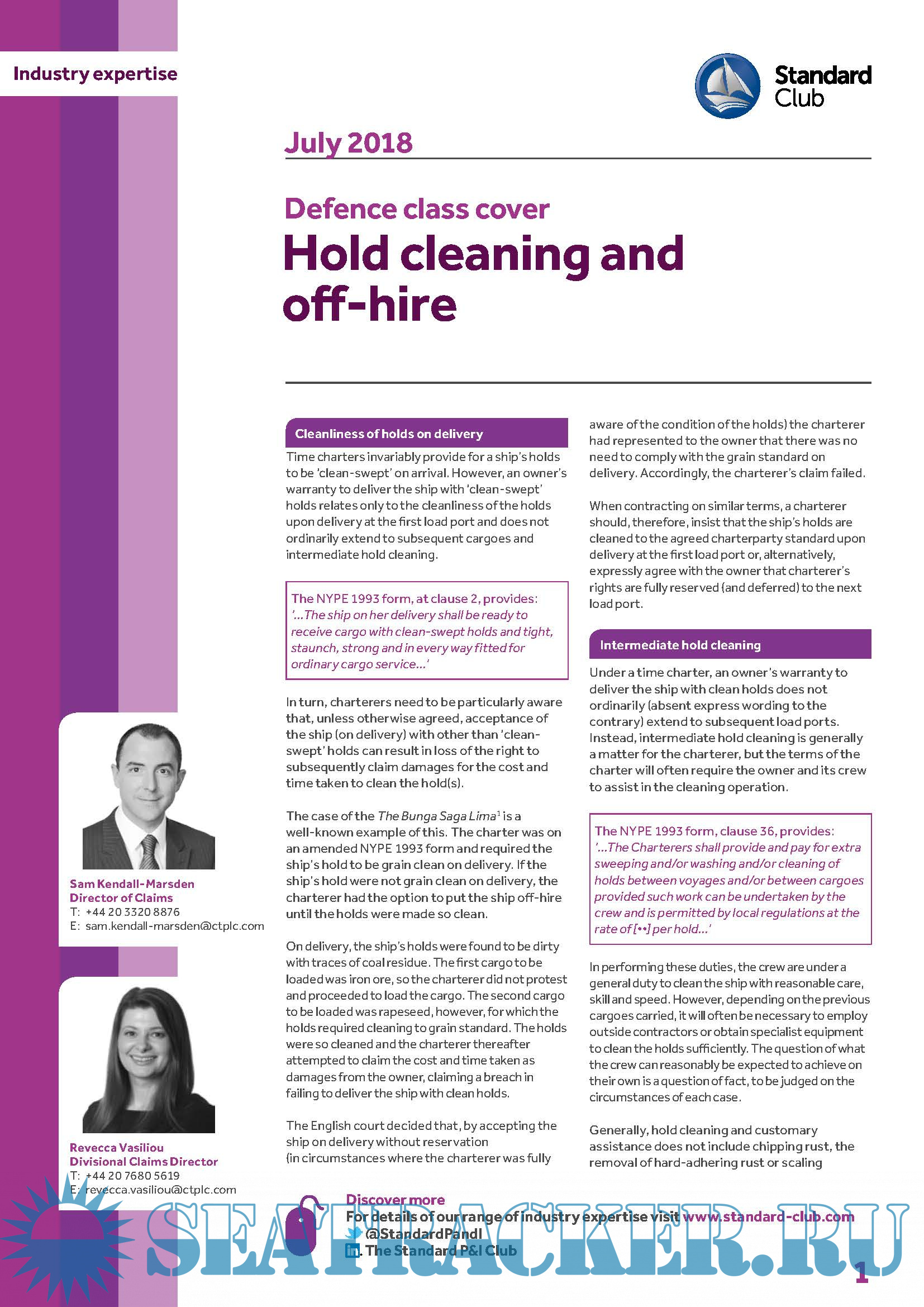 Description: This Download contains Industry expertise from The Standard P&I Club 2018 Bulletins relating to Defense class cover & Contracts of carriage and bills of lading The Hague Visby Rules. For a complete description refer to contents.