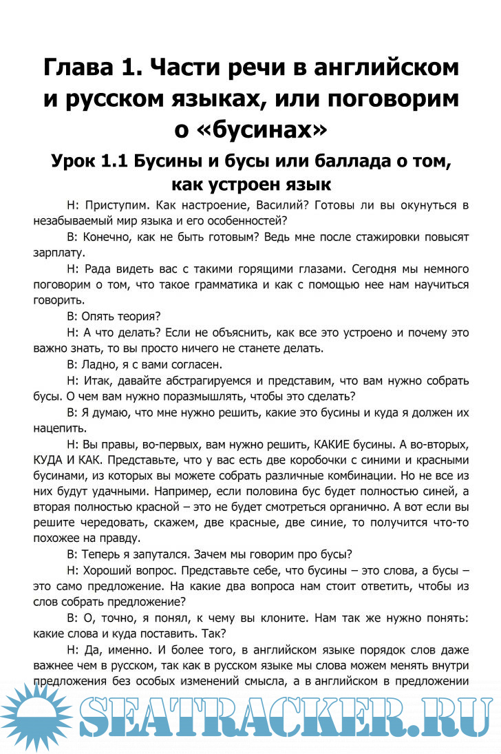 Год выпуска: 2015 Язык: Русский, Английский Автор: Наталия Городнюк Жанр: Учебное пособие Формат: PDF + fb2 Качество: Изначально компьютерное (eBook) Количество страниц: 139(pdf) + 213(fb2) Описание: Эта книга для тех, кто не любит читать скучные научные книги. Здесь вы найдете уникальный подход к грамматике английского языка, изложенной в форме диалога между преподавателем и учеником. Автор убежден, что английская грамматика очень проста, нужно только правильно донести ее до ученика. Книга состоит из теоретической и практической части. Сначала вы узнаете, как строятся разговорные предложения в английском языке, а после будете строить их самостоятельно. Доп. информация: Книга написана в форме живого диалога между Городнюк Наталией и Васей Пупкиным, который является отражением различных студентов автора. Как и большинству людей, ему присущи непонимание, желание задавать различные вопросы и делать поспешные выводы! Но к концу книги как в Васиной, так и в головах читателей, все разложится по полочкам.