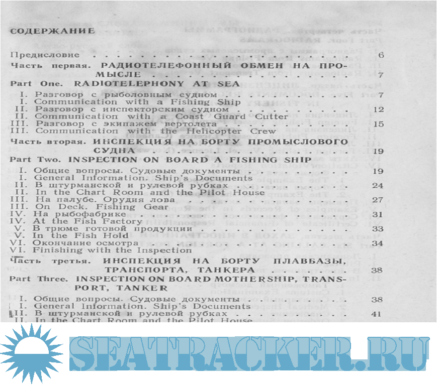 Описание: Пособие состоит из 6 частей, содержащих разговорник и некоторую документацию на английском языке. Седьмая часть включает англо-русский и русско-английский словари морских и рыбопромысловых терминов.