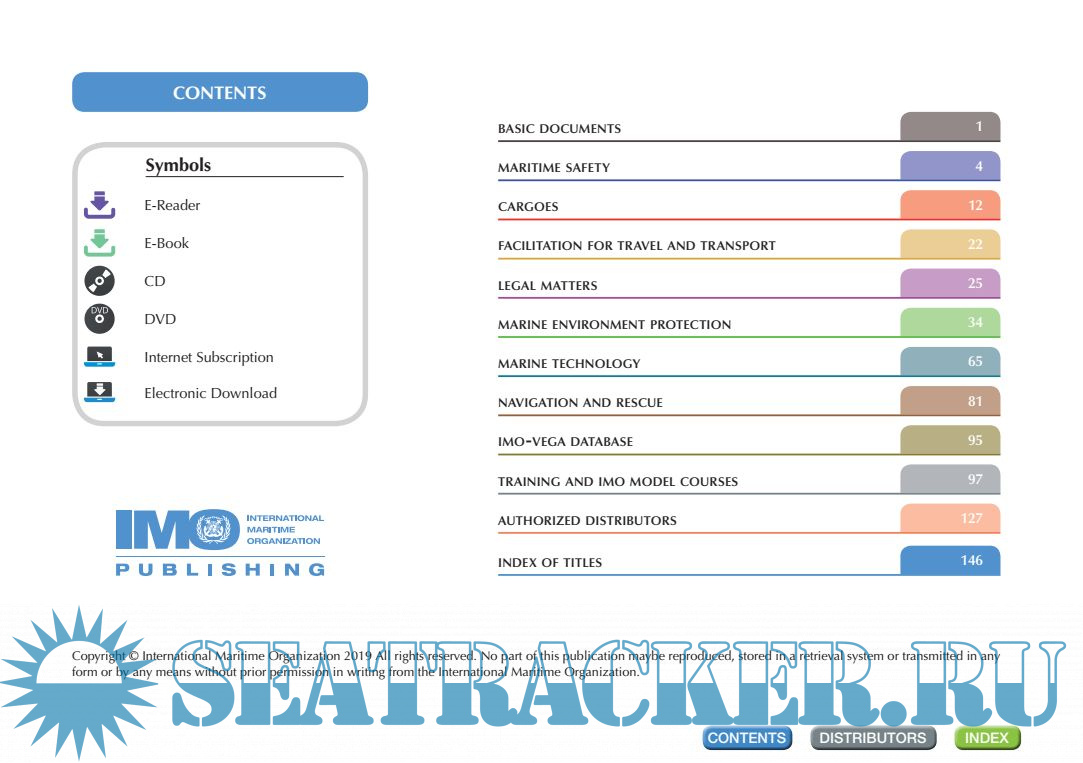 Year: 2019 Language: english Author: IMO Genre: Catalogue Publisher: IMO Edition: January 2019 Format: PDF Quality: eBook Pages count: 160 Description: IMO Publishing’s activities provide the world’s maritime community with numerous texts (conventions, codes, regulations, recommendations, guidelines, etc.) prepared by the Organization. There are over 200 titles available in English. Many are translated into Arabic, Chinese, French, Russian and Spanish. IMO Publishing also produces digital products, namely e-books, e-readers, electronic downloads, CDs and internet subscriptions. The dissemination of this information, including attendance at maritime exhibitions worldwide and regular e-newsletters to interested parties, plays an important role in promoting shipping as a safe, secure, efficient and environmentally-friendly method of transporting goods around the globe