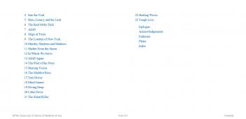 Off the Deep End looks at the sea's physical character, how it confuses our senses and makes rational thought difficult. It explores the long history of madness at sea and how that is echoed in many of today's yacht races. It looks at the often-marginal behavior of sailors living both figuratively and literally outside society's usual rules. And it also looks at the sea's power to heal, as well as cause, madness.